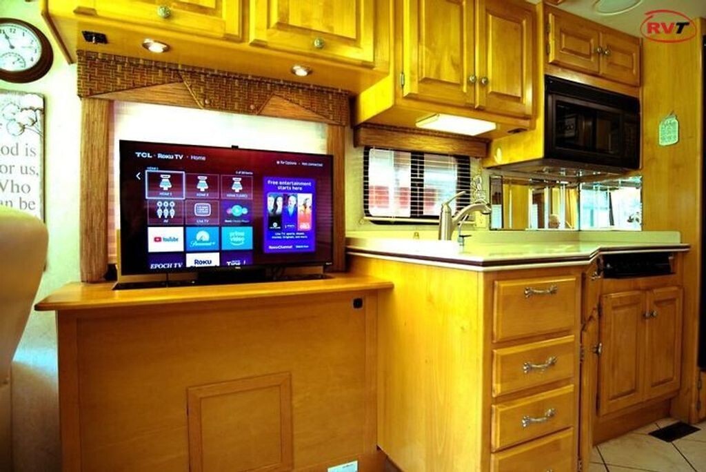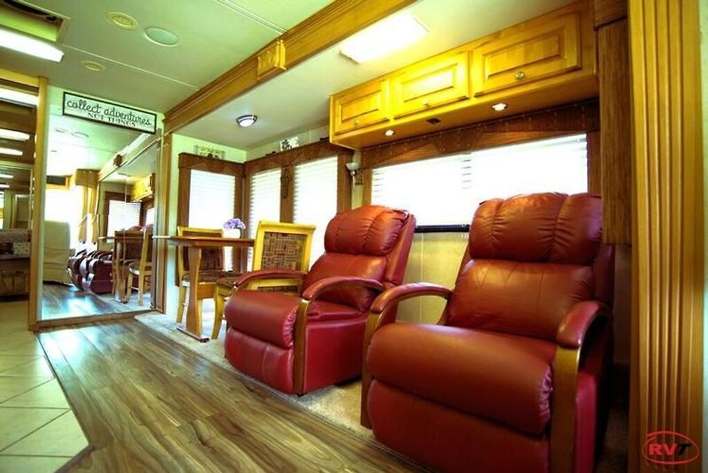 The first owner remodeled the interior in 2016. The gallery TV was relocated to a cabinet with a hideaway storage feature. This takes the place of the 3rd seat behind the passenger seat.