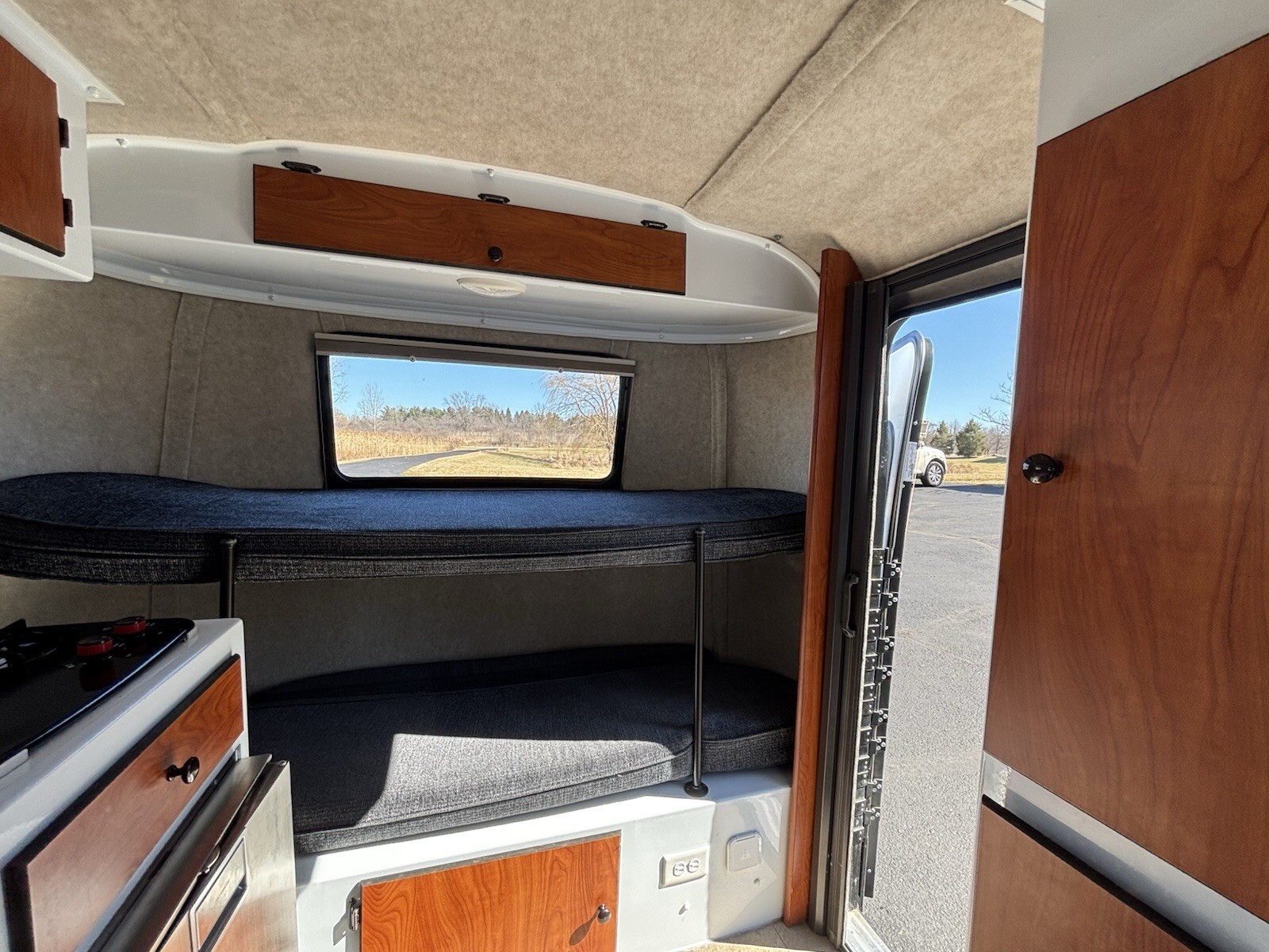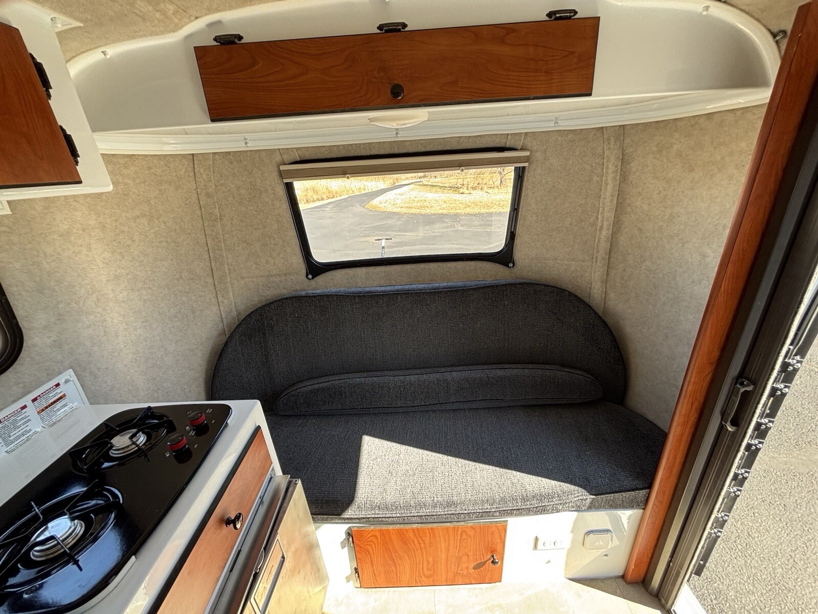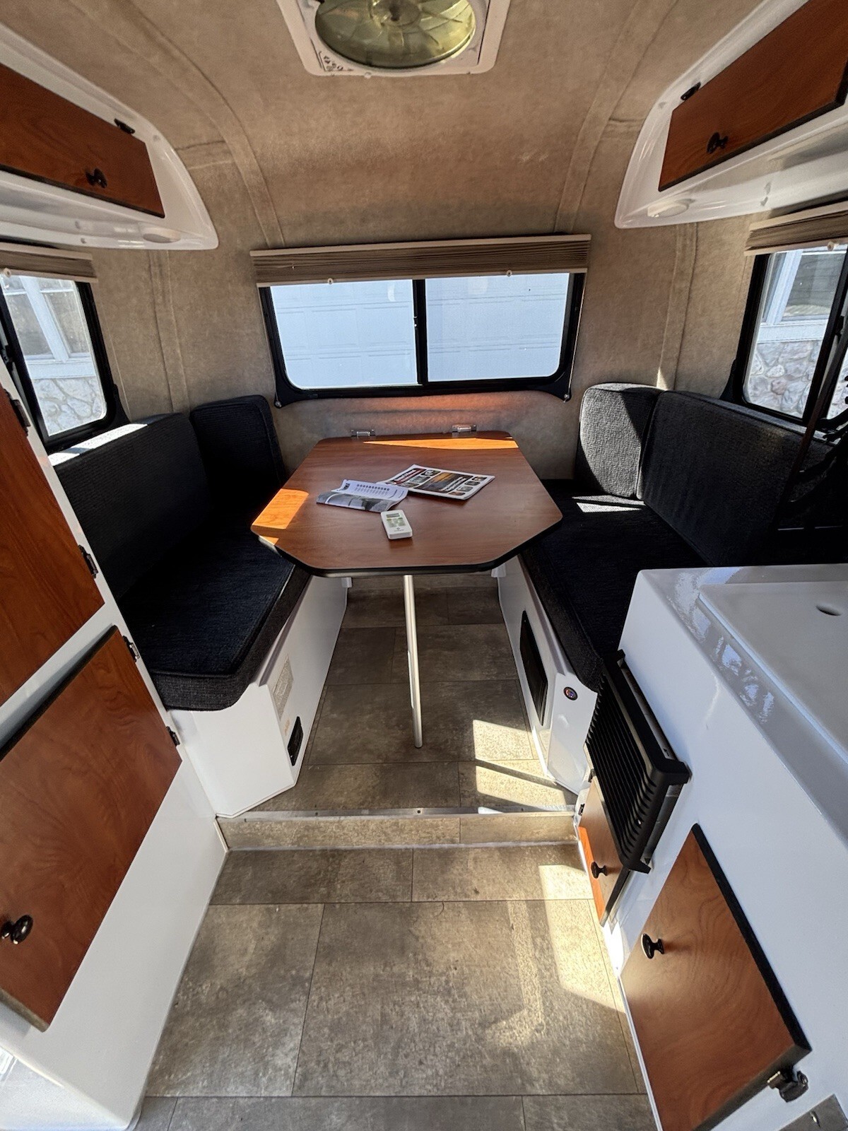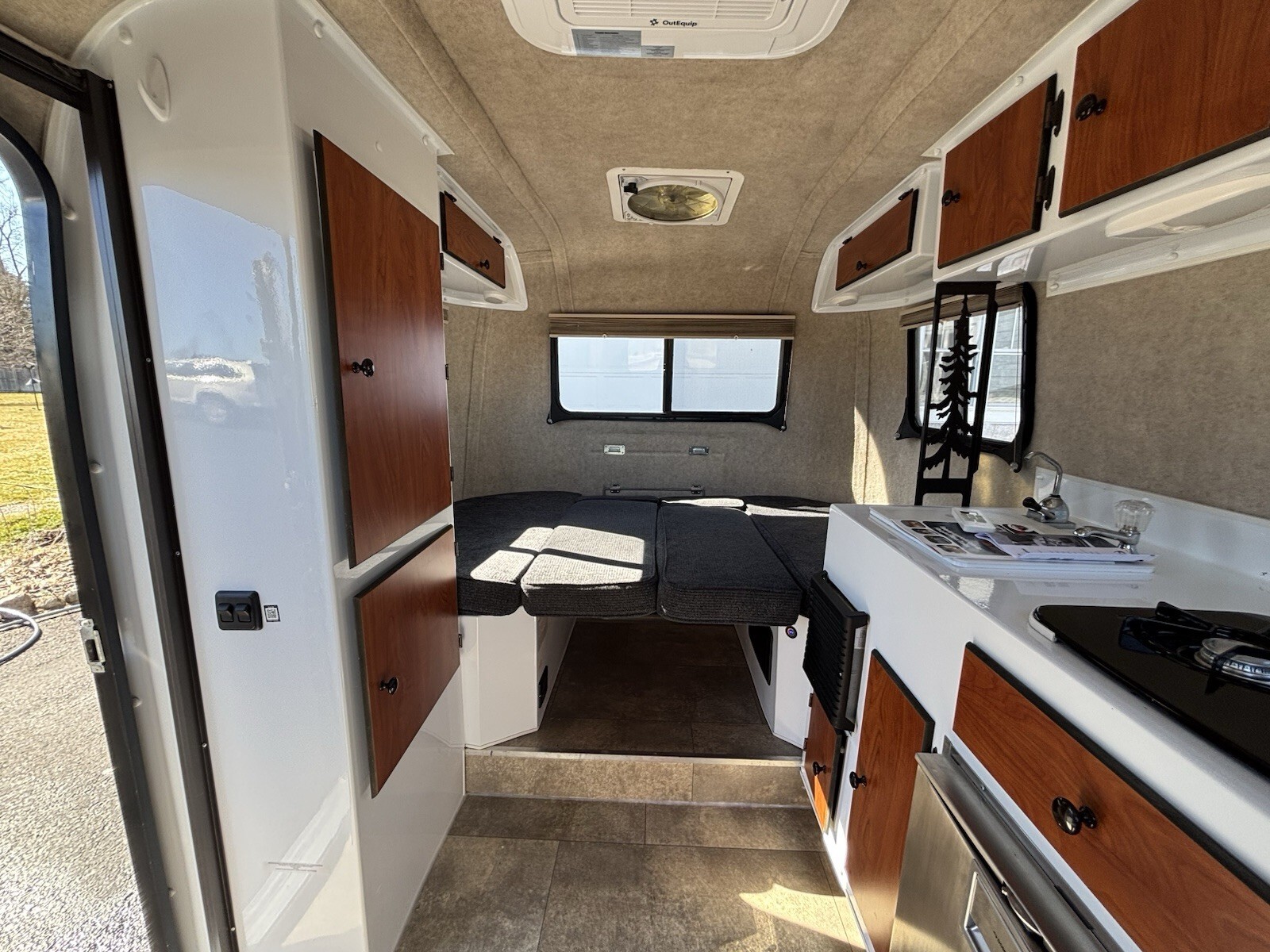 The Ultimate Climate UpgradeThe standout feature of this Scamp is the professional upgrade to a new in 2025 OutEquip DC Air Conditioner.* Efficiency: Unlike standard units, this runs on DC power, making it incredibly efficient and quiet. * Climate Control: Includes integrated thermostat and heating for year-round comfort.* Off-Grid Potential: While currently wired for standard AC shore power, this system is perfectly primed for a Lithium battery upgrade to allow for full AC operation while boondocking.* Low profile allows for storage in standard 8’ garage.