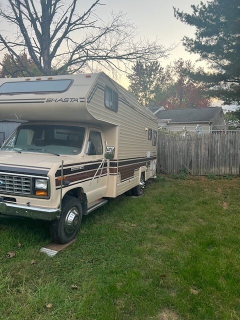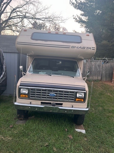You are buying a 1986 Ford E-350 Econoline Shasta RV Motorhome. This was my grandfathers; he had it from new and garage kept in heated garage. We bought it a few years ago, completely renovated it in the inside and had the engine and entire drive train gone through. This is a solid RV that has many years of life left in it, our kids are growing and we just do not use it as much as I wish we would. This has a 460 engine in it, runs great and has only 43k original miles on it. All new belts, brakes all the way around, rotors, fuel pump, etc. all replaced at 41k miles. I have all of the documents and paperwork for all work done. Please feel free to ask any questions, and I am more than happy to schedule a showing or do a video call with you. This has rooftop AC and heat, as well as a large onboard generator, furnace, water heater, etc. Everything in working order.The inside has been completely overhauled, we stripped it and primed and painted the walls, etc. New vinyl plank flooring, custom epoxy table, countertops are live edge and also butcher block. All new faucets, outdoor shower added. The back dinette area was made into a bed, with a brand-new purple super double mattress, new lights, new receptacles, brand new leather captain's chairs. This thing is ready for the cross-country trip. There is one hole in the awning that was patched about 15 years ago, with no leaks at all. There is absolutely nothing wrong with this camper. Fresh inspection, clean title. Please reach out with any questions. Your chance to own a great RV at a fraction of the cost of a new one. Because of the age, you can get Antique plates and never have to register it again.Has a full video/camera setup, to see all sides of the camper, front and back with large monitor at the front.