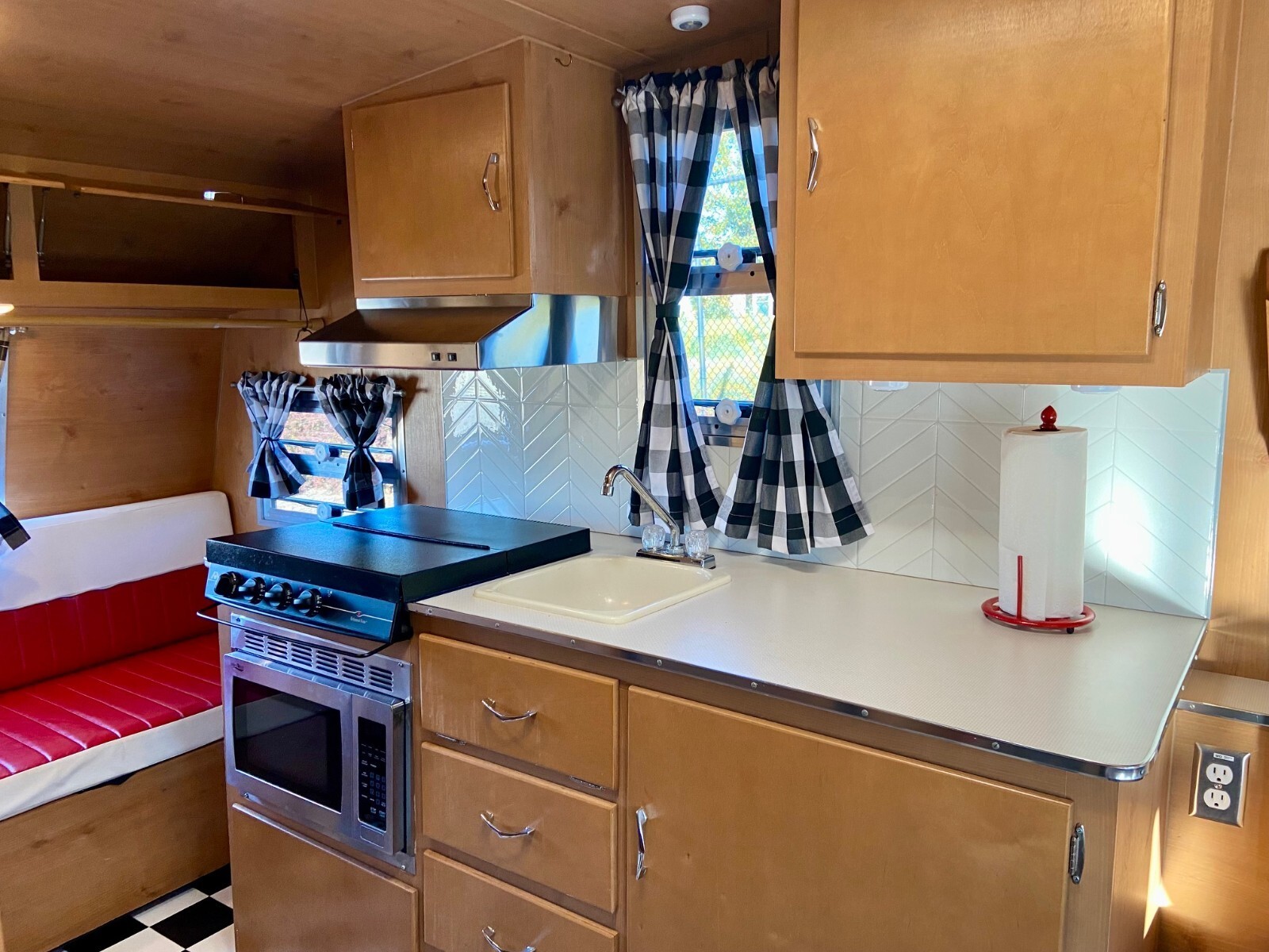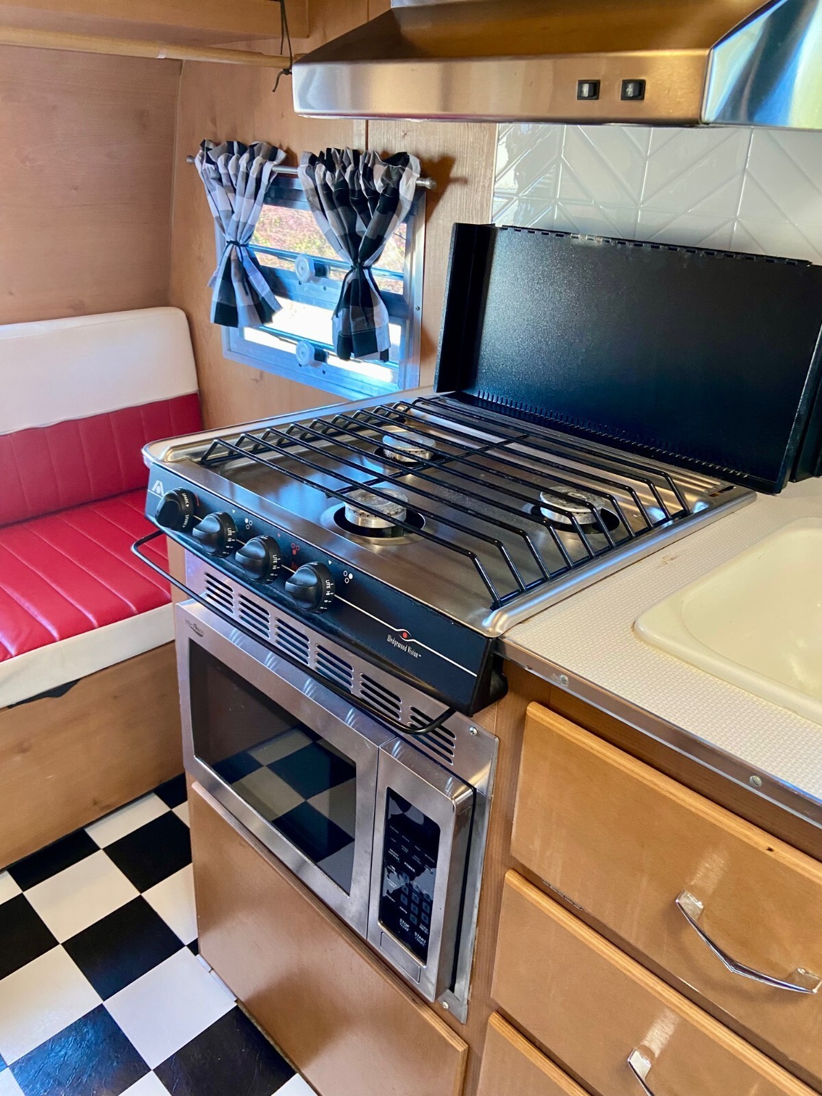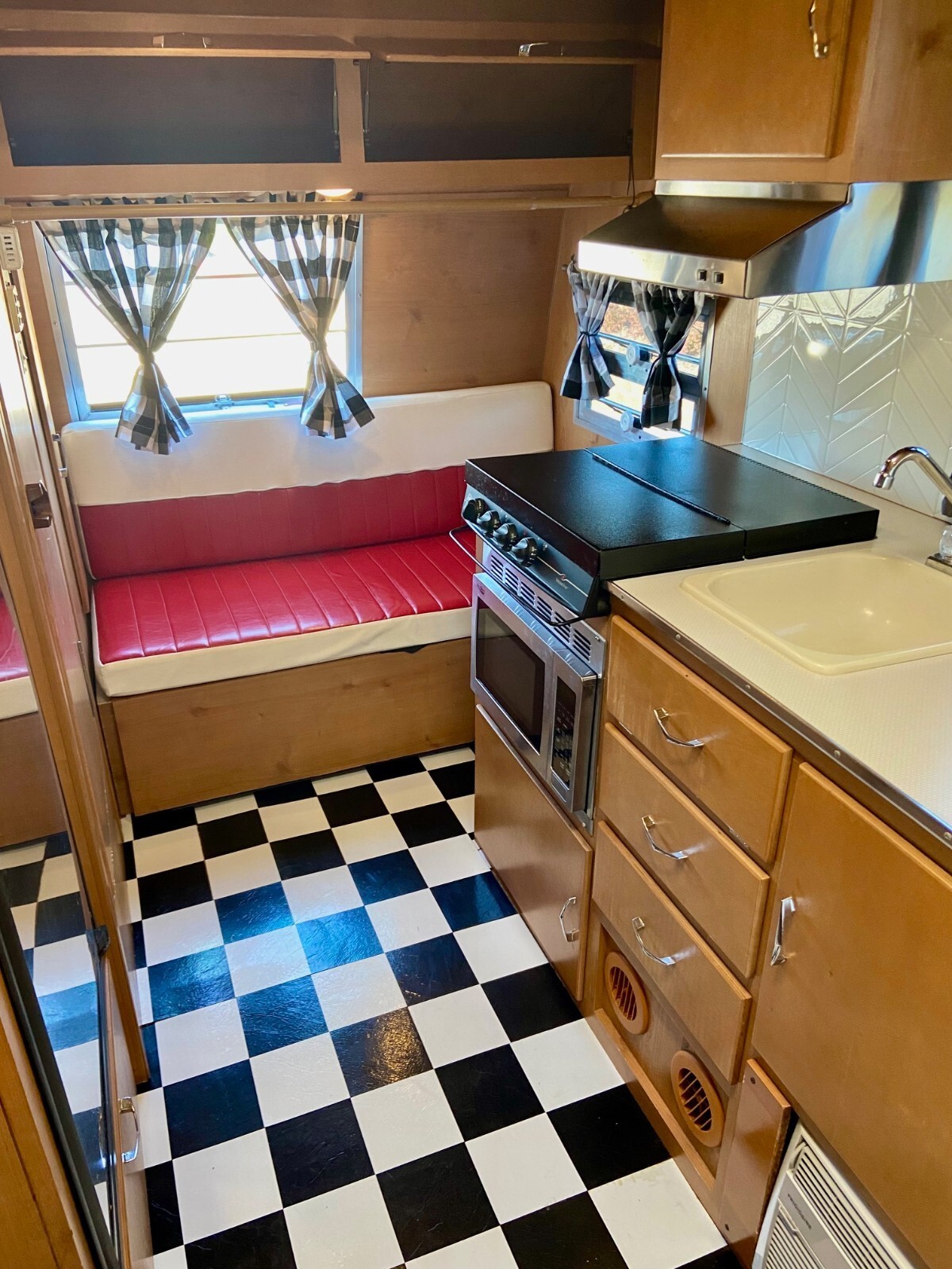 New custom checkerboard black and white curtains – also have the original curtains as well