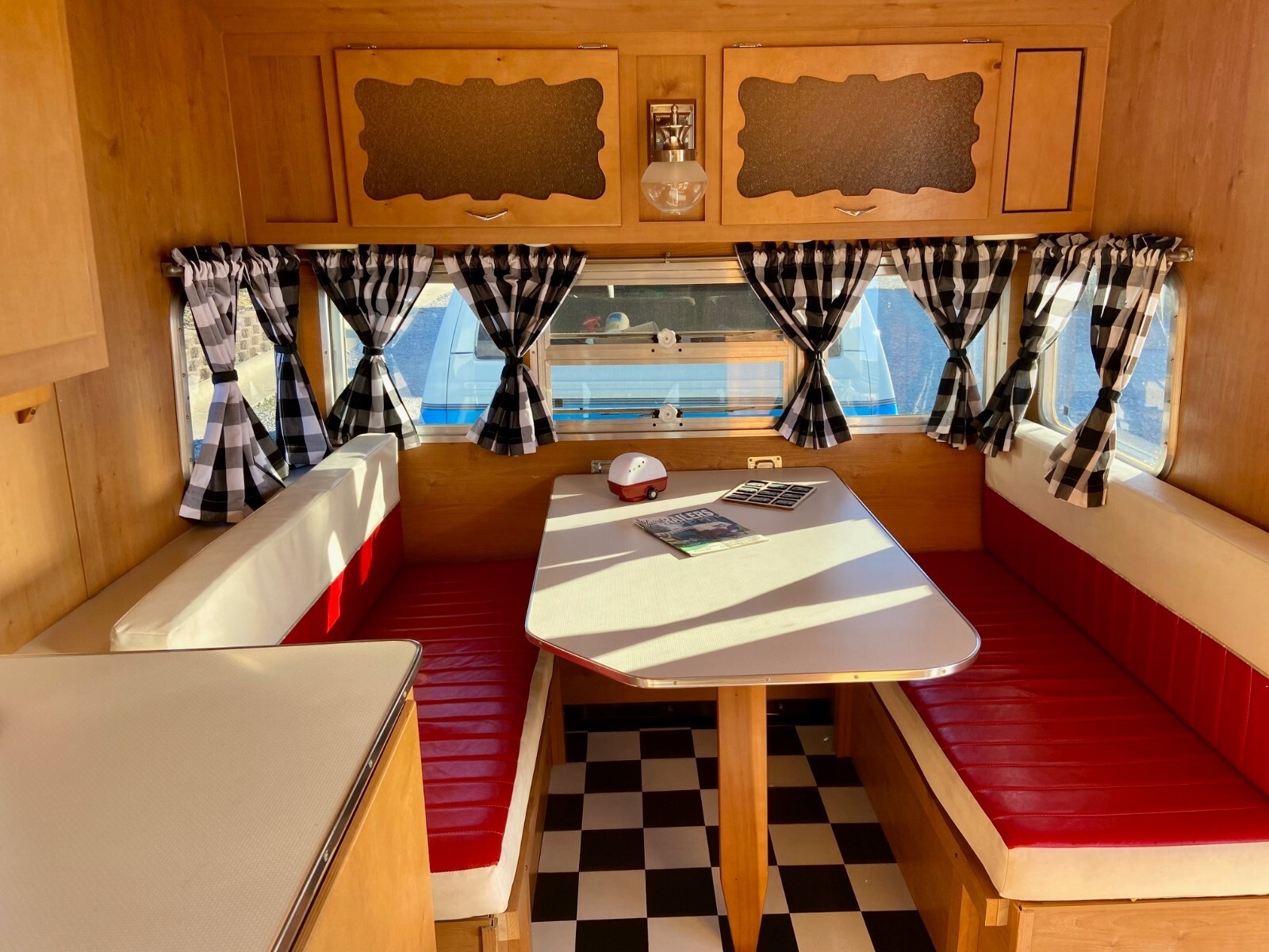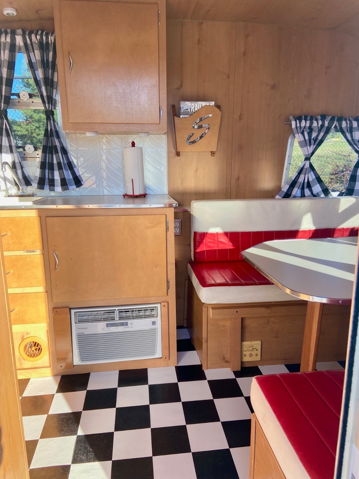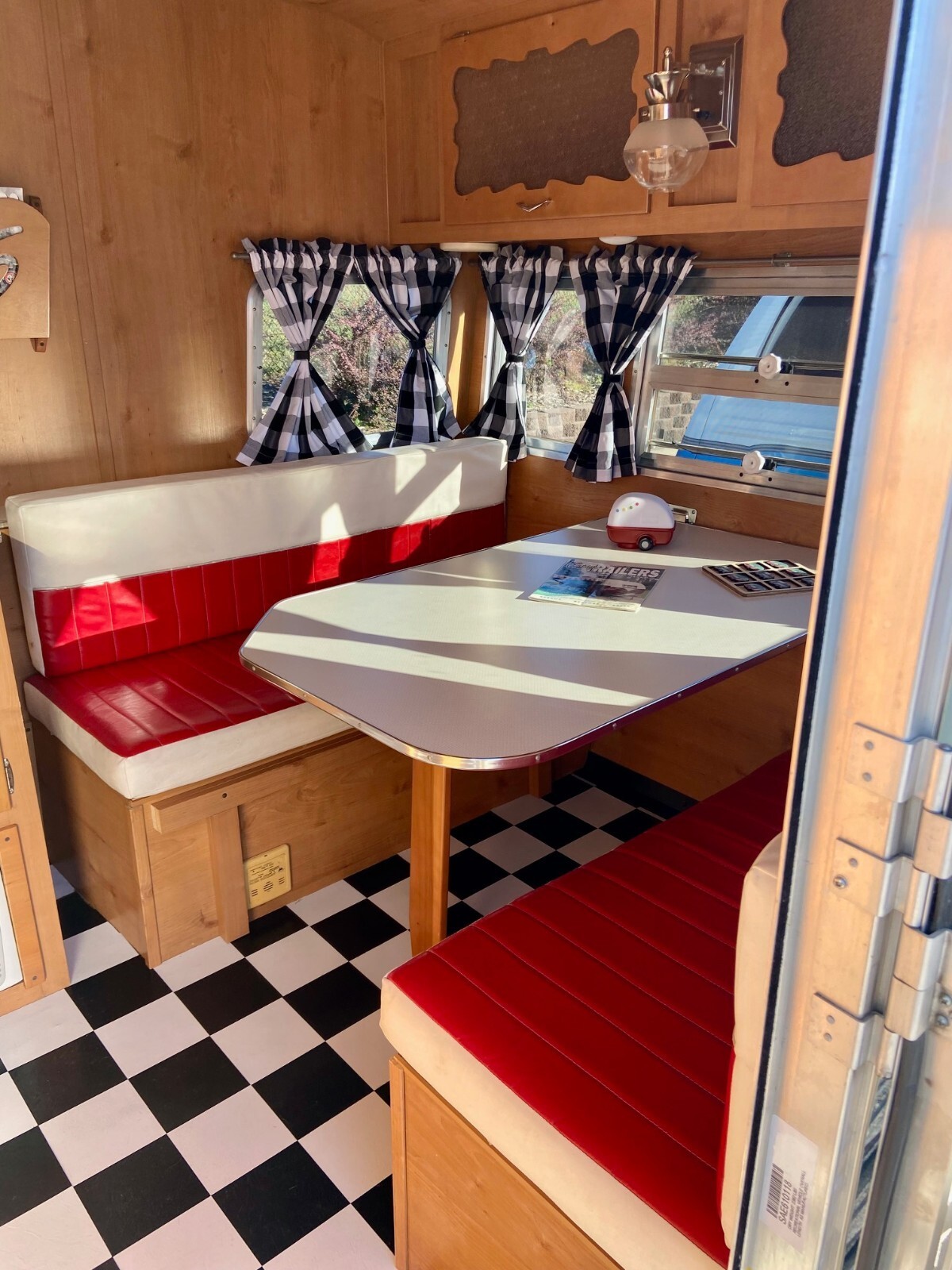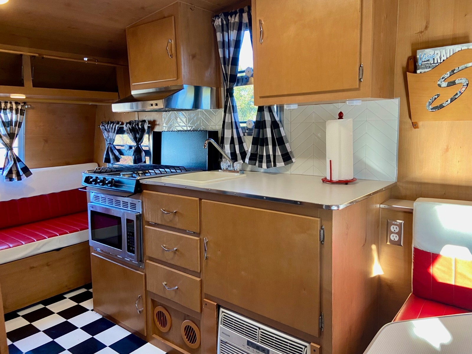 New custom checkerboard black and white curtains – also have the original curtains as well