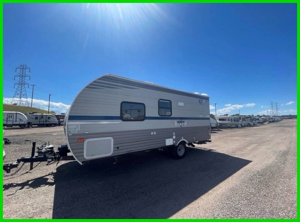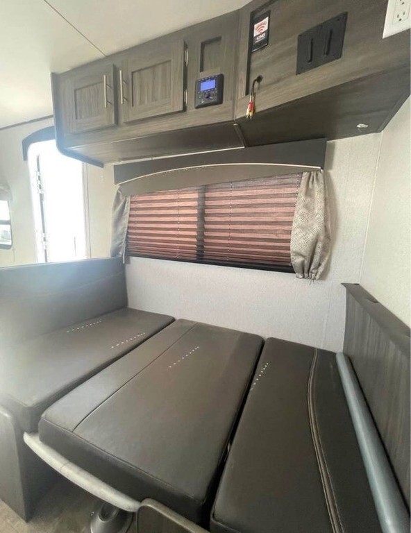 This 2020 Shasta Oasis 18FQ travel trailer is a lightweight and easy-to-tow camper that has seen very minimal use since being purchased brand new in 2020. The trailer has only been taken on two trips totaling less than 1,500 miles and has otherwise been stored in the backyard, leaving it in excellent condition that is close to new. Designed to comfortably sleep four, the Oasis features a practical interior layout with bench kitchen seating and durable vinyl flooring for easy cleaning and everyday comfort. With a dry weight of approximately 3,235 lbs and a hitch weight of 325 lbs, it is a manageable option for many tow vehicles. The trailer measures about 22.4 feet in length, 10.5 feet in height, and 8 feet in width, and is built with a wood frame and aluminum siding for dependable durability. It includes a 42-gallon freshwater tank along with 36-gallon gray and black water tanks, a propane tank, and a 12-foot power retractable awning for comfortable outdoor living. The trailer has no hail damage, though there is minor siding damage on the bottom right edge that has not resulted in any water leaks. The title is currently held by the financing institution due to an existing lien; once the transaction between buyer and seller is completed, the title will be shipped to the seller within approximately 7–10 days (expedited shipping is available), after which it will be delivered to the buyer.