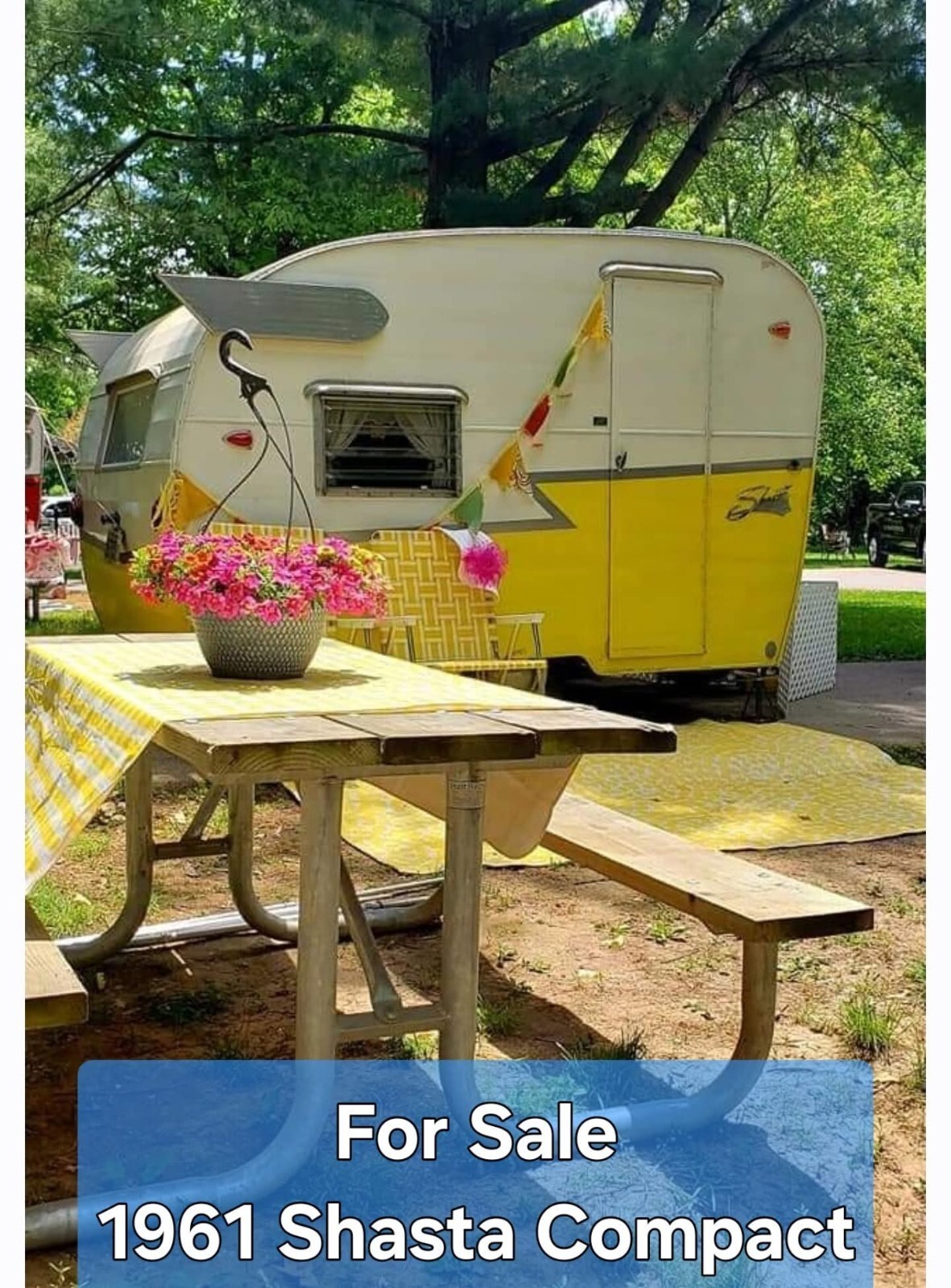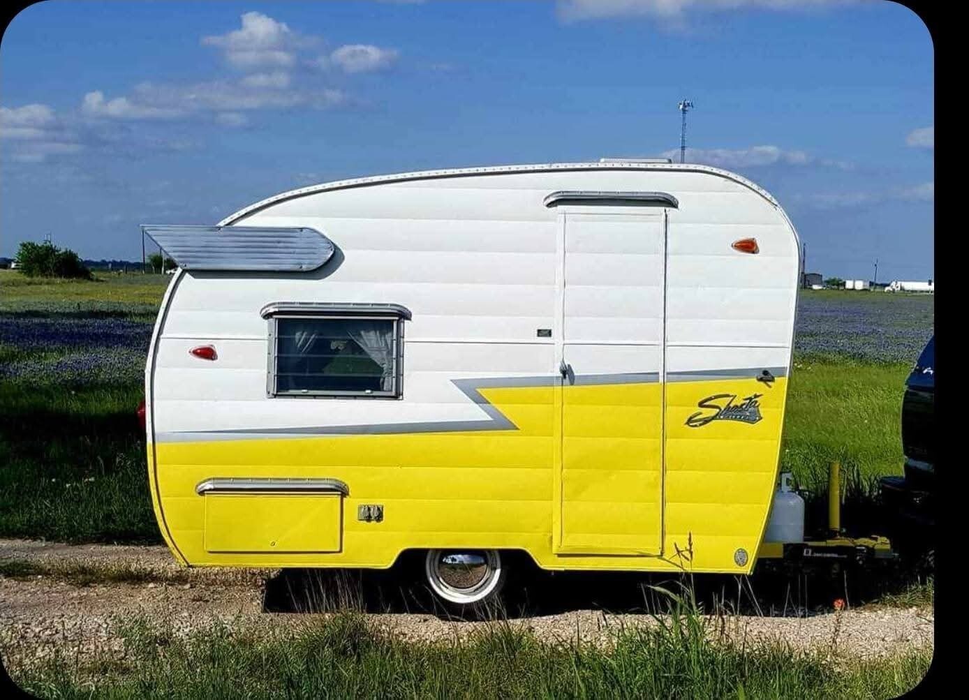 1961 Shasta Compact Camper is ready for Fall camping andvintage rallies or Girl Glamping with friends. This Shasta has won several awards and was also used as an American Greeting Card photo. The beautiful awning has 3 sides to create extra camping fun!Pick up in Terrell, Texas.