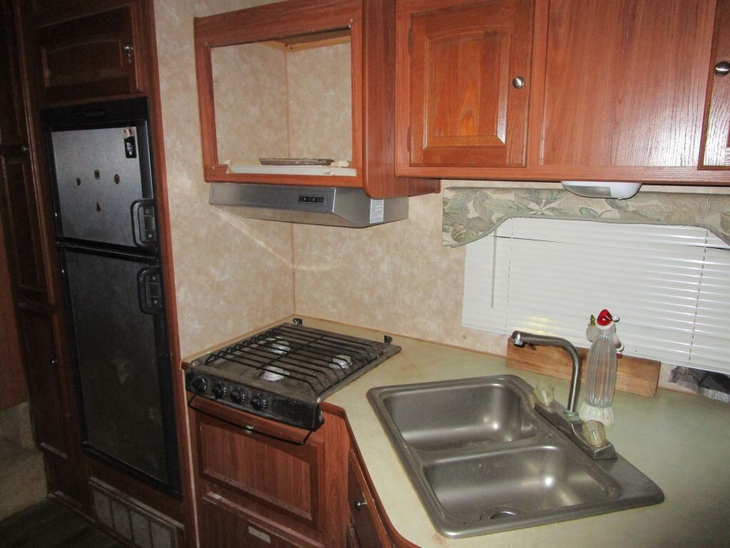 RV trailer in very good condition. Length is 30 feet. Comes with queen size bed, stove, refrigerator, 2 sinks, restroom with shower, dining table. Slide out makes the living room more spacious.