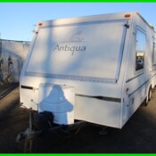The rear and rear side also feature queen size tent end expandable beds for sleeping along with overhead cabinets above the side bed, and an overhead shelf along the back.