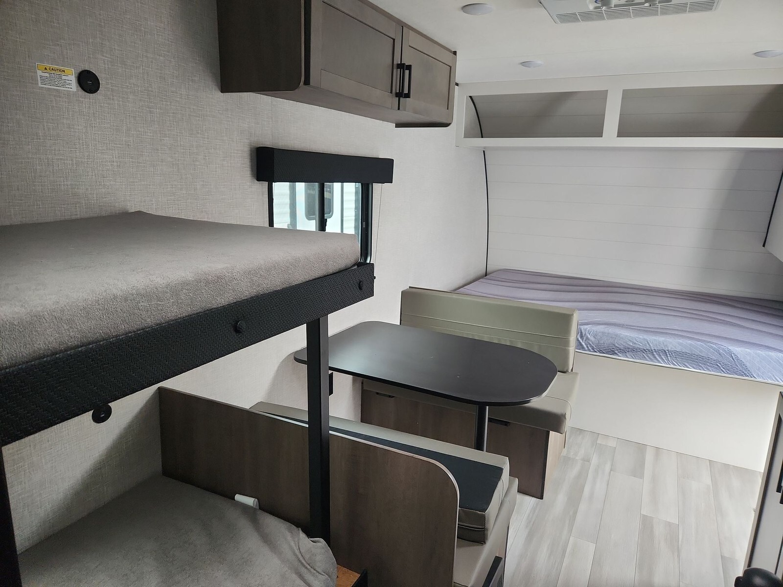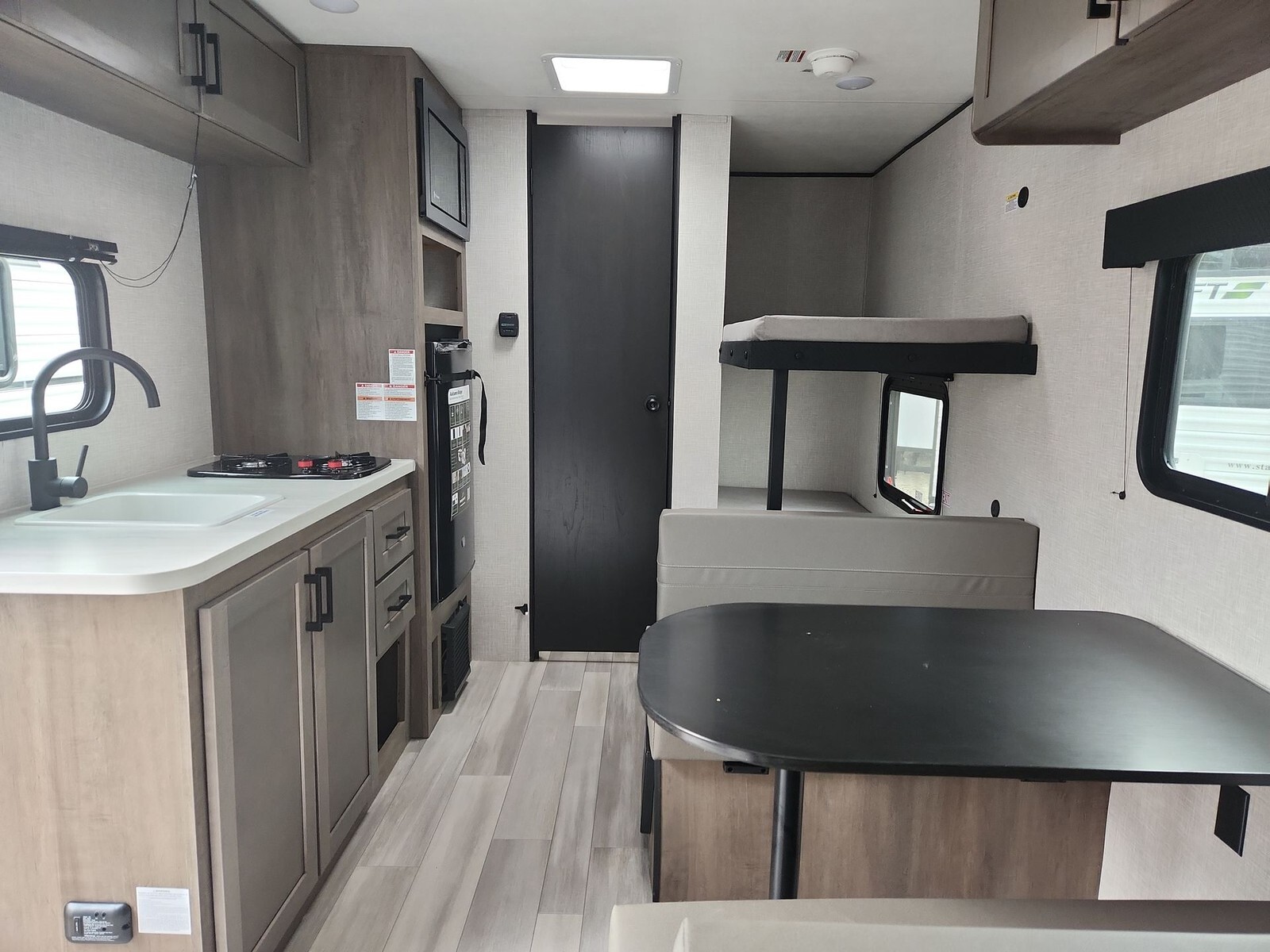 Measuring 21 feet 3 inches in length and 8 feet in width, the 177BH is easy to tow and maneuver, thanks to its single axle design. Its lightweight construction, with an unloaded vehicle weight of 3,135 lbs and a gross vehicle weight rating of 3,895 lbs, ensures compatibility with a variety of towing vehicles. The exterior boasts a sleek, modern look with black front diamond plate protection and tinted safety-glass windows, enhancing both durability and aesthetics.