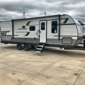 This simple, yet cozy travel trailer is perfect for all your outdoor excursions. You can unload the exterior storage when you get to camp, then head inside to make lunch on the two burner cooktop or microwave oven. A 12V refrigerator will keep your perishables fresh, and a booth dinette will provide dining space. Everyone can take turns freshening up in the private bath that includes a tub/shower and a toilet, and the little ones are sure to love the bunk beds!