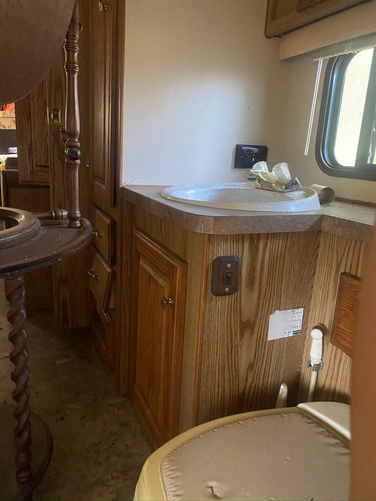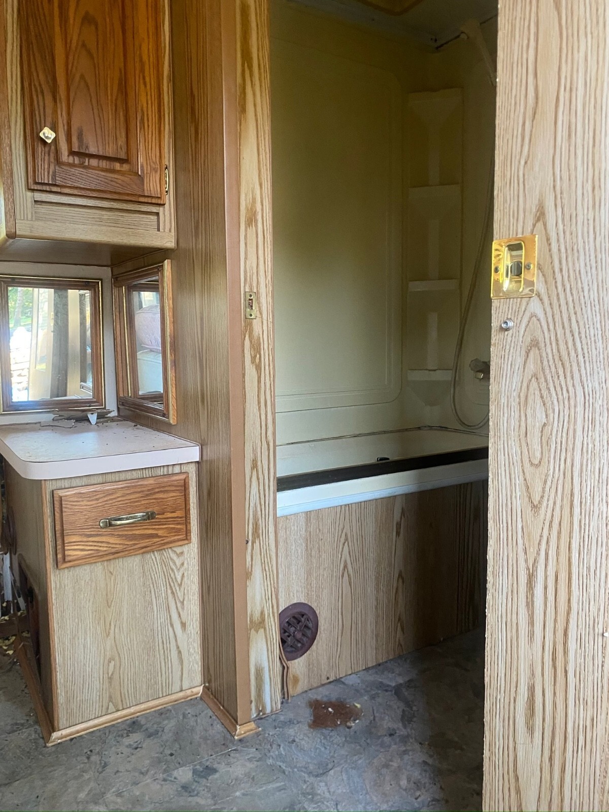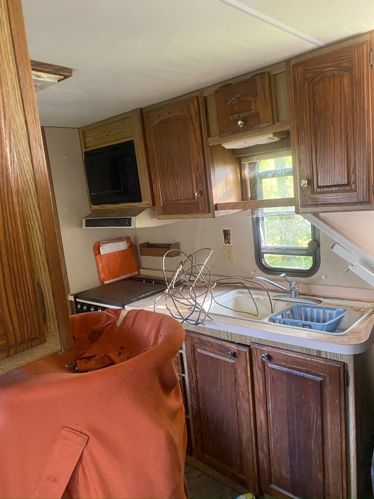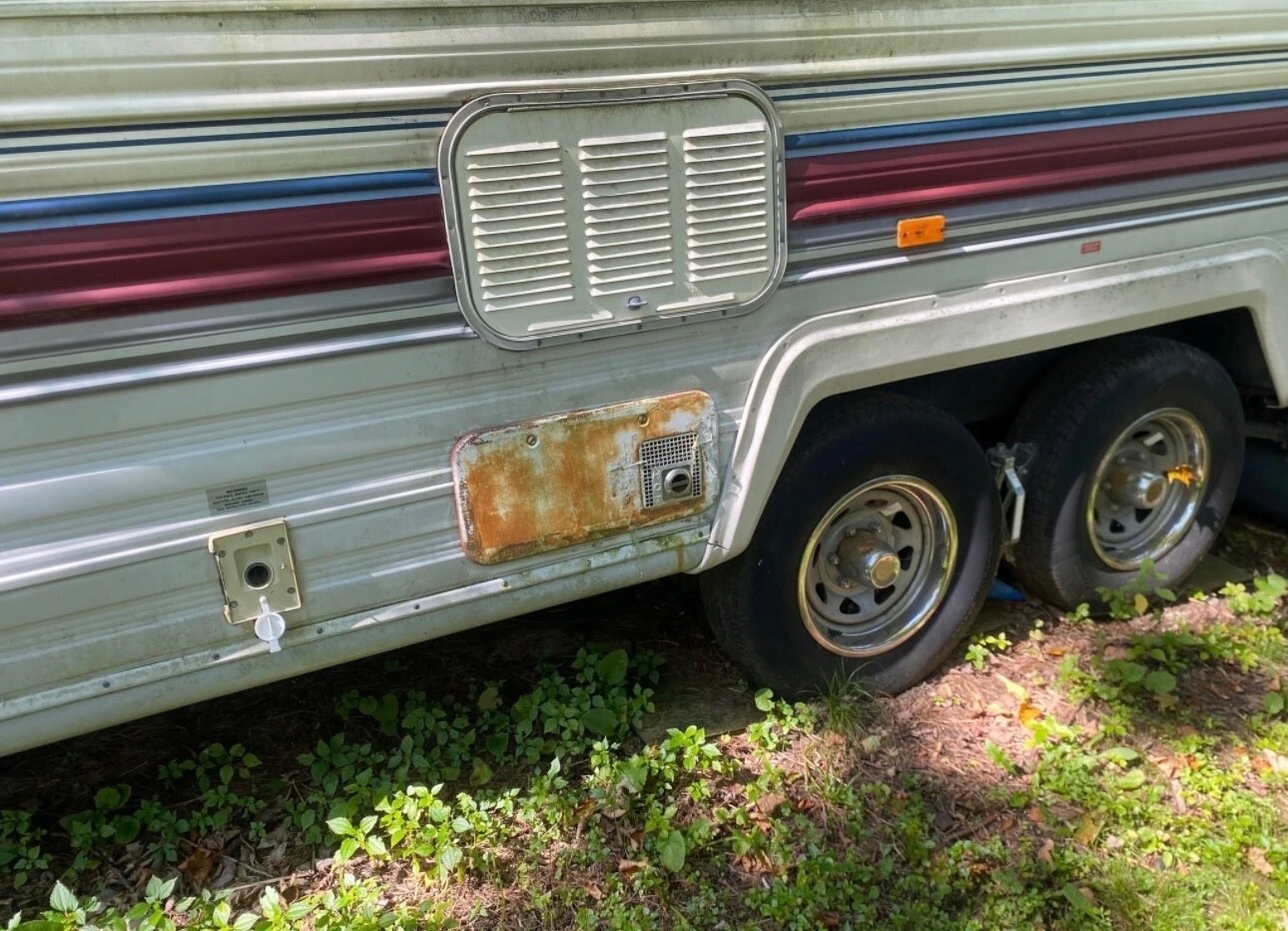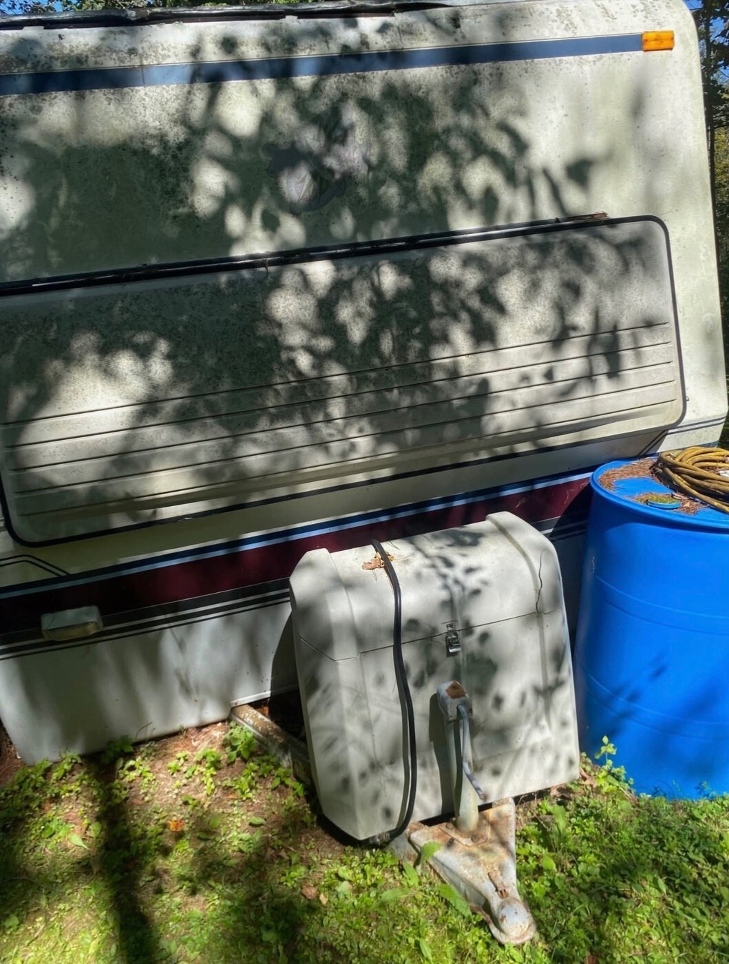 This Travel Trailer need repairs done. It needs a window repaired, repainting, frame is solid and leaks Unknown. Wheels may need air or tires replaced. Trailer tongue is a pull behind and ready to go.