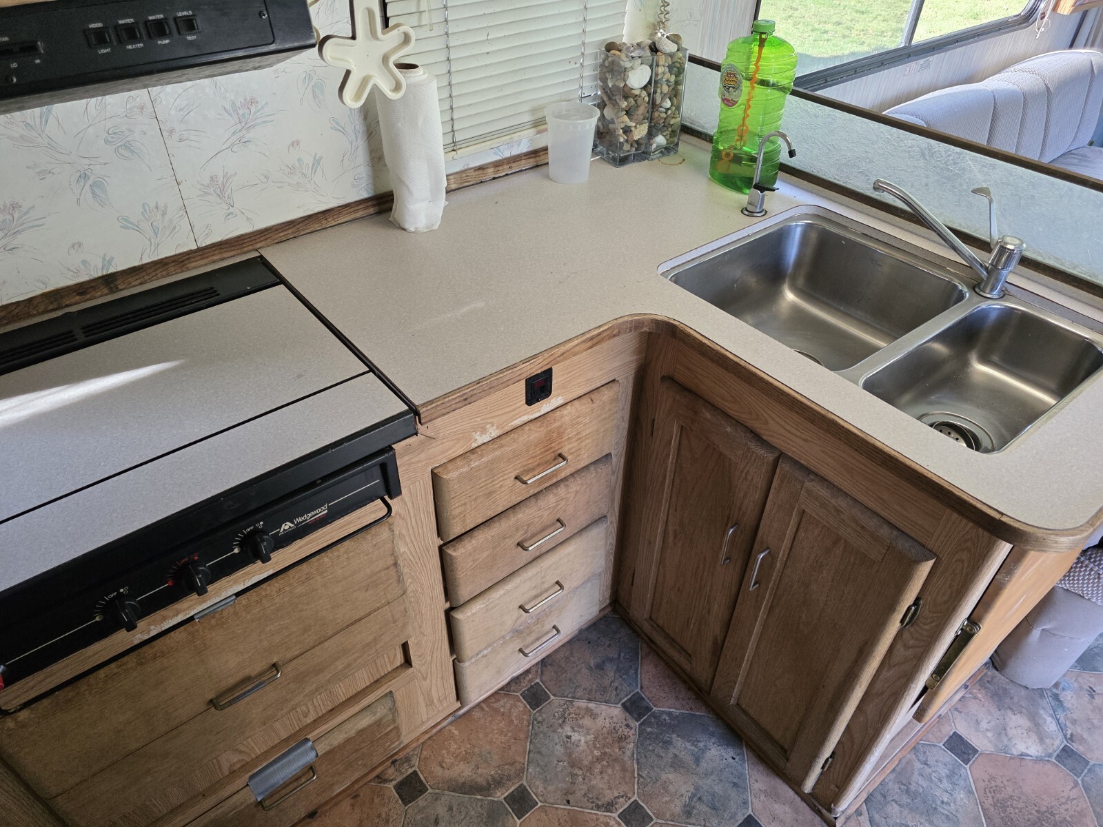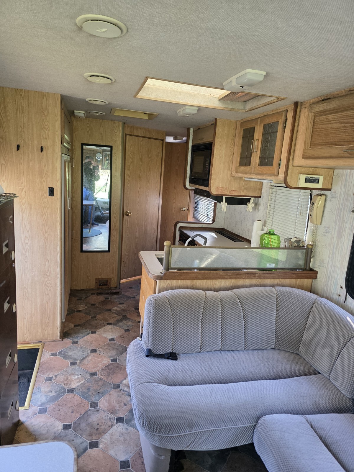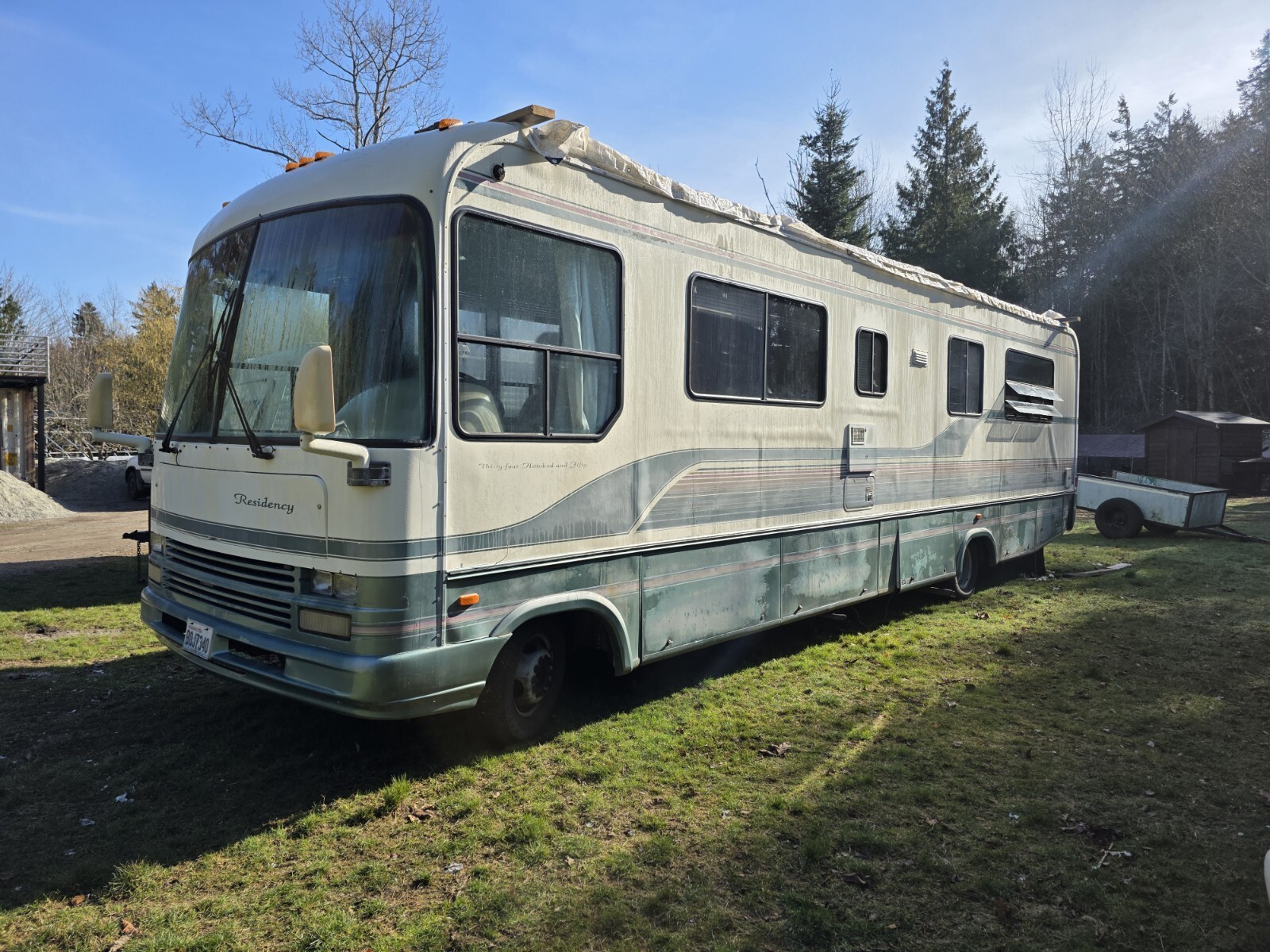 This used to be a wonderful RV for our family. It has taken us from California to Montreal and from Florida to Washington State. It has 43,842 original miles with a new transmission installed about 10,000 miles ago. The tries, breaks and other systems are either in very good shape or used to be in good shape before we placed it in storage for the last 3 years. We did that because a tree branch fell on the rear corner which caused water to enter and create a sizable amount of water damage. Now, it needs a battery and fresh gas. It should start up with a new battery, but I can't guarantee that so please come have a look to verify the condition for yourself.