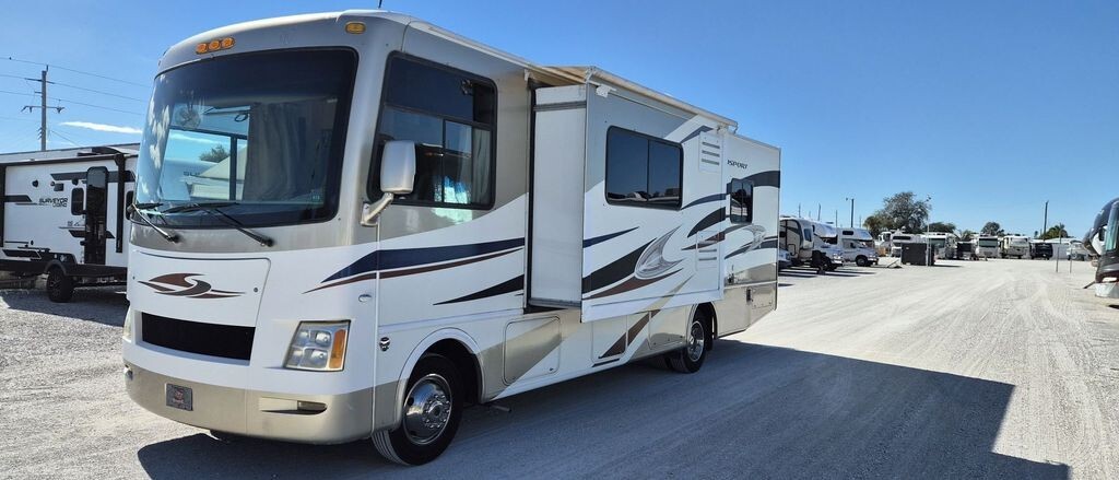 Enjoy the open road in comfort and confidence with this 2013 Thor Motor Coach Windsport 29X Class A motorhome. Measuring 30' 10", this coach offers the perfect balance of spacious living and easy maneuverability, making it ideal for both first-time Class A owners and seasoned travelers. Built on a Ford chassis with a powerful V10 gas engine, the Windsport delivers smooth performance and dependable handling on every journey.