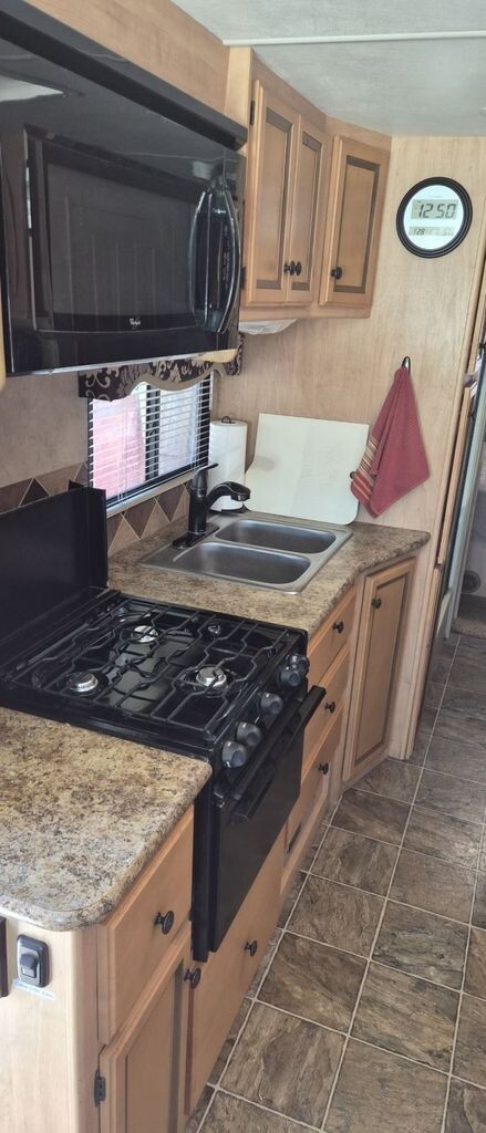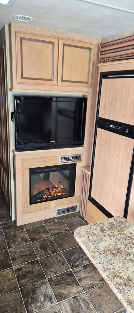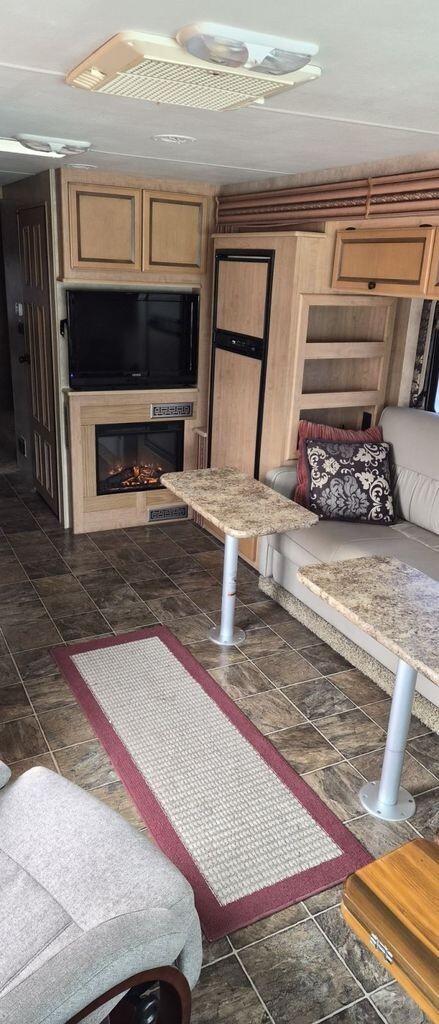 Inside, the smart layout features a large slide-out that opens the living area, creating a bright, welcoming space for relaxing in the recliner and enjoying the fireplace or entertaining. The kitchen is fully equipped with a refrigerator, microwave, a 3 burner cooktop/oven, and ample storage for all your travel needs. Have a seat at one of the 2 eating areas either at the comfortable couch at two 2 tables or at the captain chairs up front at the 28 X 30 double drop leaf table. All tables are removable. The private rear bedroom provides a comfortable retreat complete with sleep comfort mattress while the roomy bathroom adds everyday conveniences and youll appreciate generous storage. It has a power awning, and an onboard generator for off-grid camping. Well-built, easy to drive, and ready for adventure, this Windsport 29X is a fantastic choice for weekend getaways or extended road trips. It has a little delamination in front of large rear storage door below the beltline that has been abated- see picture.