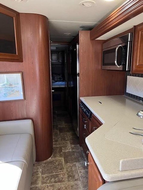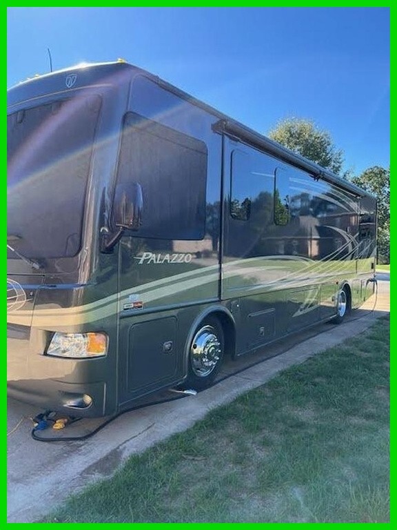 2014 Thor Motor Coach Palazzo 33.2 Class A Motorhome The 2014 Thor Motor Coach Palazzo 33.2 is a luxurious Class A motorhome designed for comfort, performance, and long-distance travel. With only 47,094 miles, this motorhome offers a like-new experience on a heavy-duty Freightliner chassis powered by a Cummins 6.7L diesel engine. Inside, it features newly upholstered seating, a well-equipped kitchen, a comfortable bedroom, and an open floor plan with modern finishes. The living space has been upgraded with a 40” Samsung TV, Vizio soundbar, and Bluetooth connectivity for entertainment. Additional amenities include keyless entry, dash cam, washer/dryer combo, Magne Shades, a Winegard Connect 2.0 WiFi repeater, traction chains, and an air horn for added safety. Exterior storage a