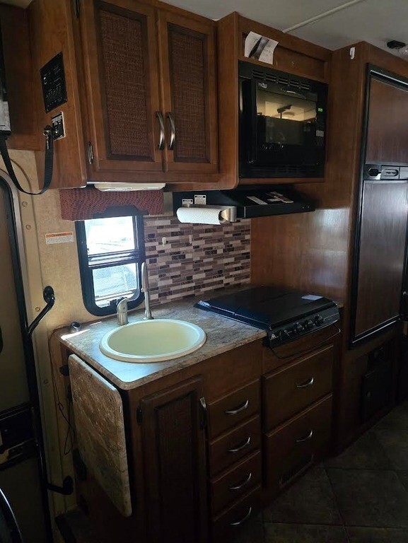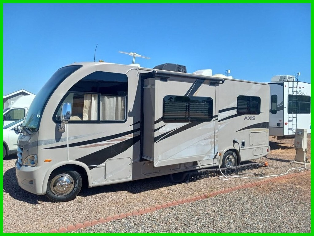 2015 Thor Motor Coach Axis 24.1 Class A RV For Sale in Goodyear, AZ 85338 This Axis is powered by a 6.8L V10 engine and a 5-speed automatic transmission with 33,000 miles. The overall length is 25.5 feet and comes equipped with 1 power slide-out, a 16.6-foot power awning, 1 A/C unit, a generator, and room to sleep up to 5. This unit has been well-maintained. Kitchen/Living Area Features 3-Burner Stove/Oven Overhead Fan Microwave Mid-Size Fridge/Freezer Sink & Faucet Storage Space TV Sleeper Sofa