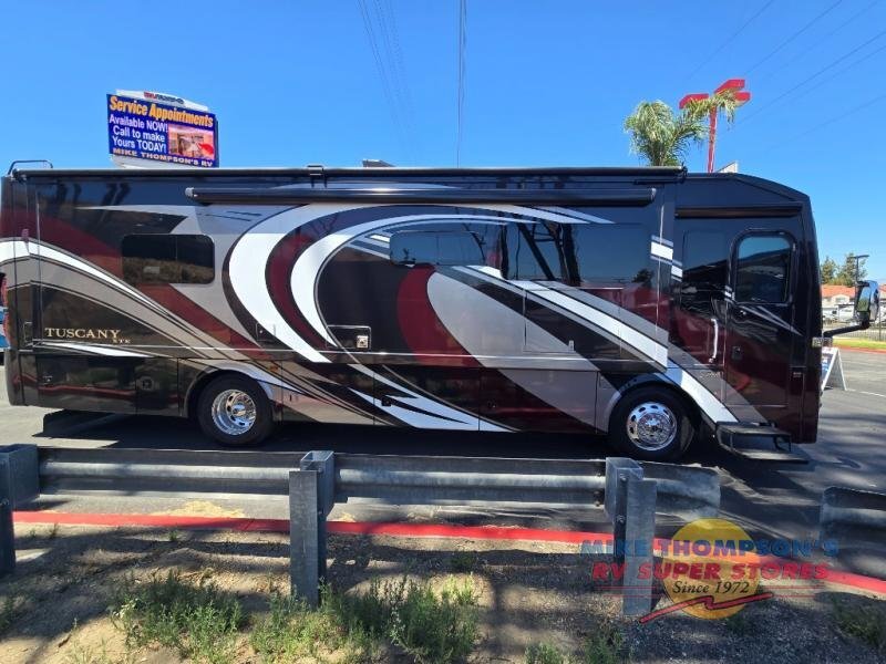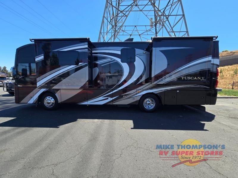 Take the Tuscany XTE class A diesel motorhome with you on your next adventure. With triple slides and all the comforts of home, you will enjoy lots of wide open living space!
