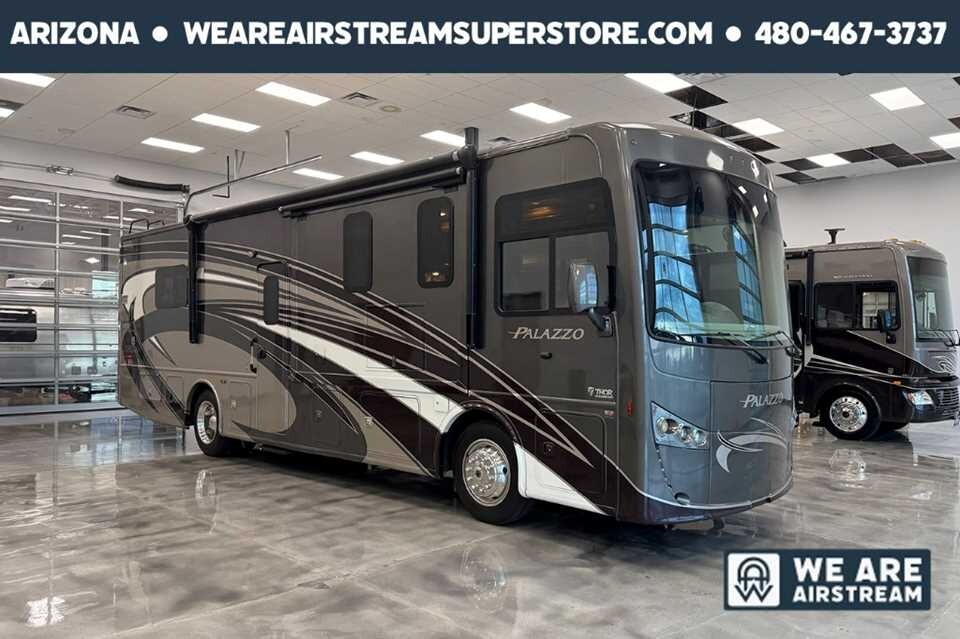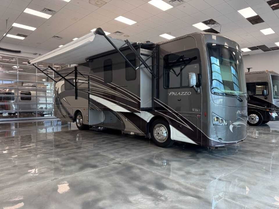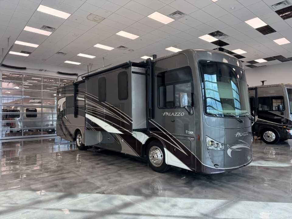 This motorhome undergoes our comprehensive multi-point inspection and service assurance process prior to delivery, ensuring all major systems — engine, generator, appliances, slide-outs, plumbing, HVAC, and electrical — are professionally checked, serviced, and ready for the road.OverviewExperience refined travel in this 2016 THOR Palazzo 334 — a thoughtfully designed diesel motorhome offering spacious living, residential conveniences, and reliable onboard systems. With a 2000-watt pure sine inverter and an Onan® diesel generator with just 311 hours, this unit is well-equipped for both boondocking and full-service campgrounds.Key FeaturesLow-hour diesel generator: Onan® with 311 hours2000-watt pure sine wave inverter for safe power to electronicsSpacious interior with