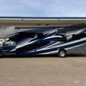 This Hurricane 29M Class A gas motor home from Thor Motor Coach features a full wall driver's side slide out, a king bed, an outdoor kitchen and an exterior TV, plus more!The rear private bedroom includes a king size bed with nightstands on each side along with overhead cabinets. The wall opposite the bed is part of a full wall slide out and offers a wardrobe, dresser, and a 32" LED TV.Continuing in the slide out, the kitchen includes a refrigerator, three burner range, overhead microwave, corner angled kitchen sink, counter space, and overhead cabinets for your dishes and things. A sofa bed completes the the front you may choose to use the drop down overhead bunk that provides a 54" x 74" sleeping area, or the coffee table below in between the captain's chairs for your morning cup of Joe.Along the curb side, a dream dinette provides space for meal time and additional sleeping space as well. A 40" LED TV can be found along the interior wall.The overhead cabinets above the dinette continue over the entry door for more room for all your cooking and camping items.The bathroom includes an extended vanity area, sink, medicine cabinet, toilet, and a 24" x 36" shower.Outside there is an outdoor kitchen and a 32" LED exterior TV to enjoy in the great outdoors. There are many more standard features in this coach to love!