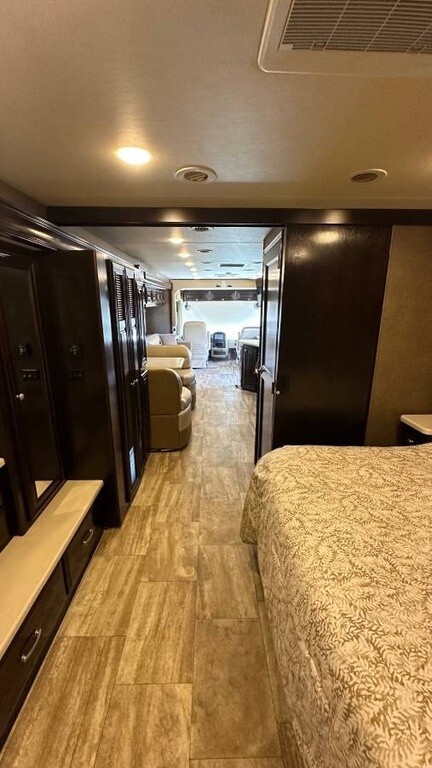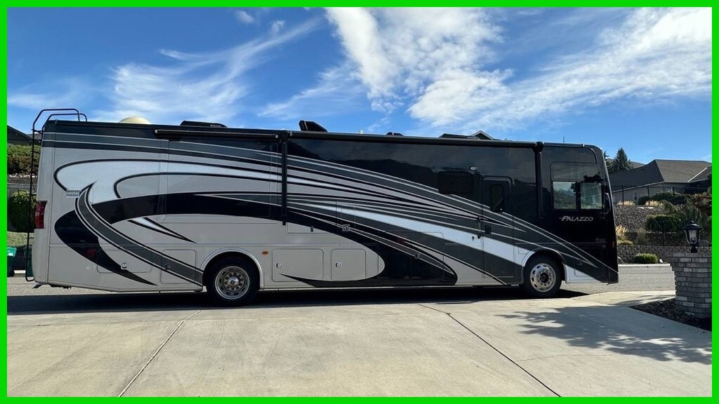 2017 Thor Motor Coach Palazzo 36.1 Class A Motorhome This 2017 Thor Motor Coach Palazzo 36.1 is a well-equipped Class A diesel pusher built on a reliable Freightliner chassis and powered by a Cummins diesel engine delivering 340 HP. With only 13,000 miles and a single owner, it’s in excellent condition. The spacious interior features two slide-outs, two restrooms, a washer/dryer combo, and sleeping accommodations for up to eight, making it perfect for family travel or entertaining. Additional highlights include a satellite TV system, three televisions, and a tow vehicle system with a 10,000 lb capacity. Whether you’re tailgating, heading south for the winter, or enjoying extended road trips, this Palazzo combines power, comfort, an
