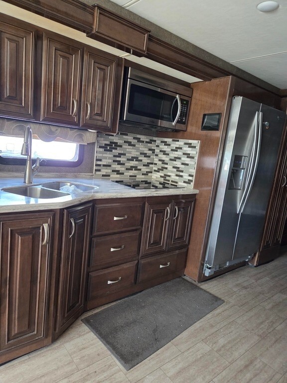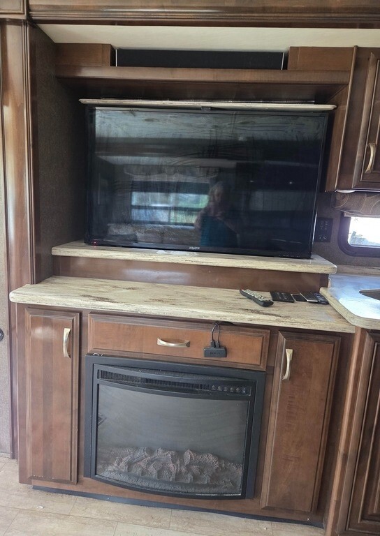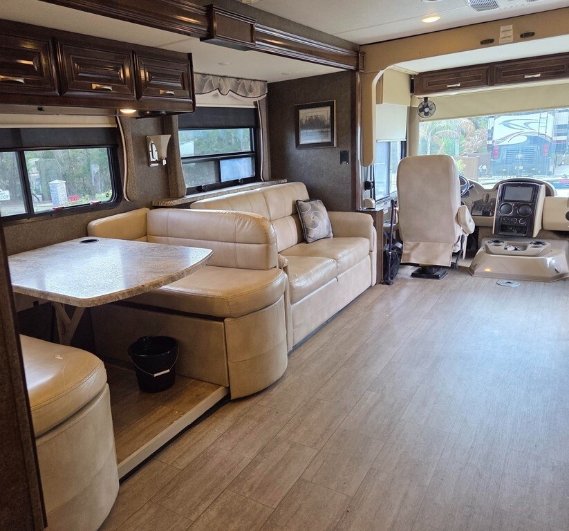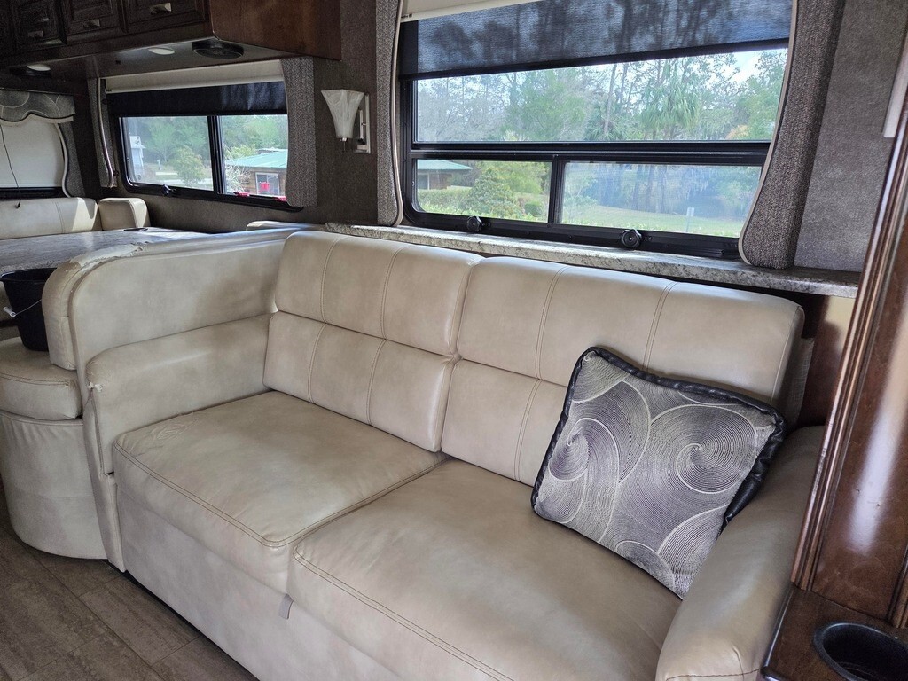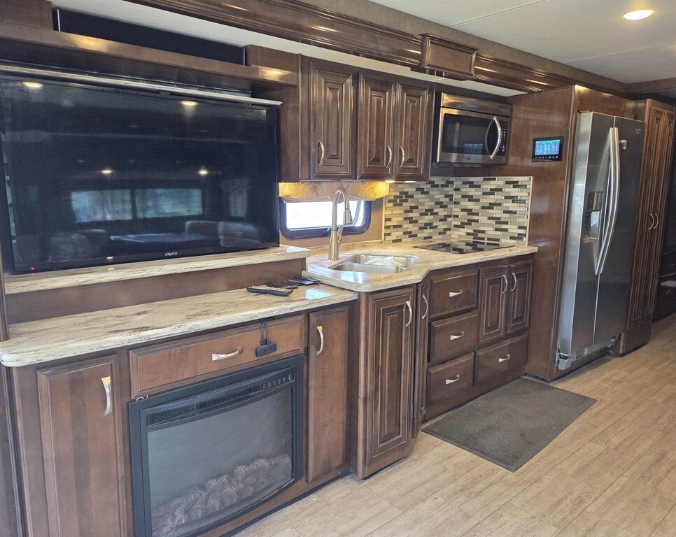2018 Thor Motor Coach Challenger 37FH Class A RV For Sale in Silver Springs, FL 34488 This Thor is powered by a 6.8L V10 engine and a 6-speed automatic transmission with 14,400 miles. The overall length is 38.75 feet, and it comes equipped with 3 power-retractable slide-outs with toppers, 2 power awnings, 2 A/C units, an Onan generator, 1½ baths, a fireplace, an outdoor entertainment system, and room to sleep up to 8. This unit has been well-maintained. Kitchen/Living Area Features 2-Burner Induction Cooktop Microwave/Convection Oven Side-by-Side Residential Fridge/Freezer with Ice & Water Sink & Fauce