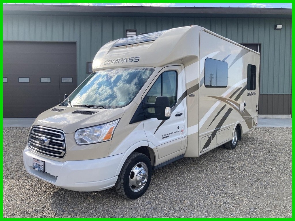 2018 Thor Motor Coach Compass 23TR Class C Motorhome This 2018 Thor Motor Coach Compass 23TR is a like-new, go-anywhere Class C motorhome that’s been meticulously cared for and fully outfitted for immediate travel. With just 25,182 miles on its 3.2L Ford Transit 3500HD turbo-diesel engine, it delivers dependable performance and excellent fuel economy, averaging around 16 MPG. The generator shows only 35.1 hours, and both the engine and generator oil have just been changed with Amsoil. It rides on brand-new 70K-rated tires, and the exterior paint shines beautifully with no dings or scratches. The Compass 23TR features a comfortable tan interior, one slide-out for extra living space, and sleeping accommodations for three. It includes