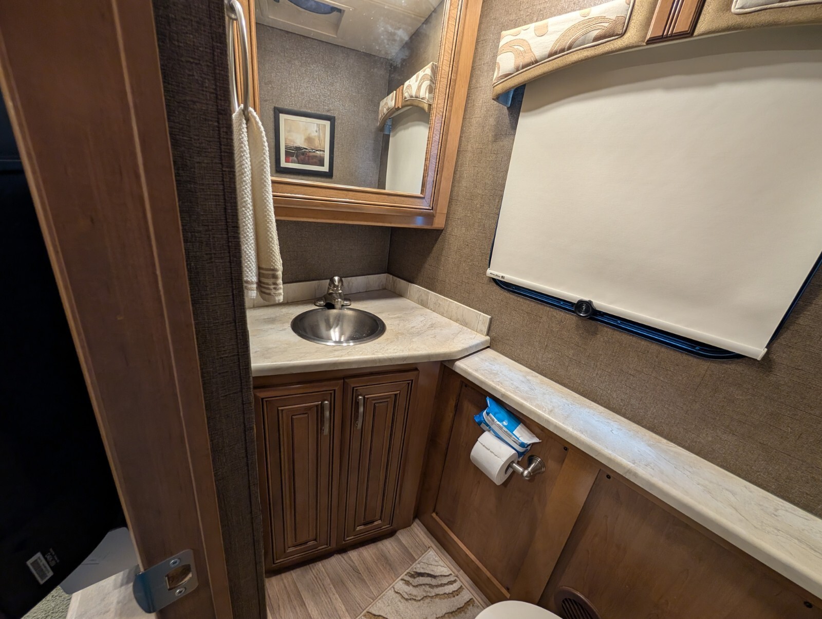 Full body paint. Includes washer and dryer. 6.7L Cummins engine rated at 340 HP. Diesel generator. Mechanically everything works and is in great condition. Complete PMs done annually by Freightliner dealer. There is some delamination of the furniture. Has about 25,000 miles.