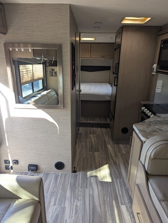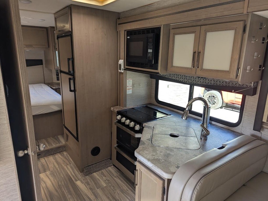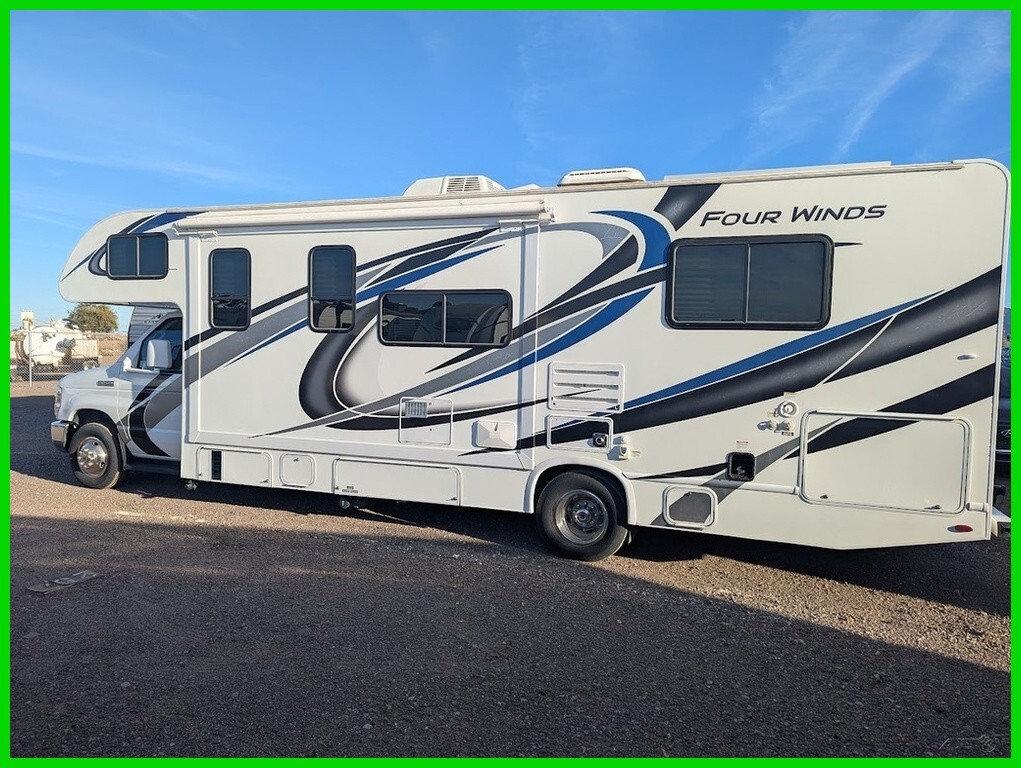 2021 Thor Motor Coach Four Winds 28Z Class C RV For Sale in Phoenix, AZ 85041 This Thor is powered by a E450 V8 engine and a Torqshift automatic transmission with 15,885 miles. The overall length is 29.92 feet and it comes equipped with 1 power retractable slide-out, 1 power retractable awning, 1 A/C unit, solar, and plenty of room to sleep 8. This unit has been well-maintained. Kitchen Area Features 3-Burner Stove/Oven Overhead Fan Microwave Mid-Size Fridge/Freezer Sink & Faucet Booth Dinette Storage Space