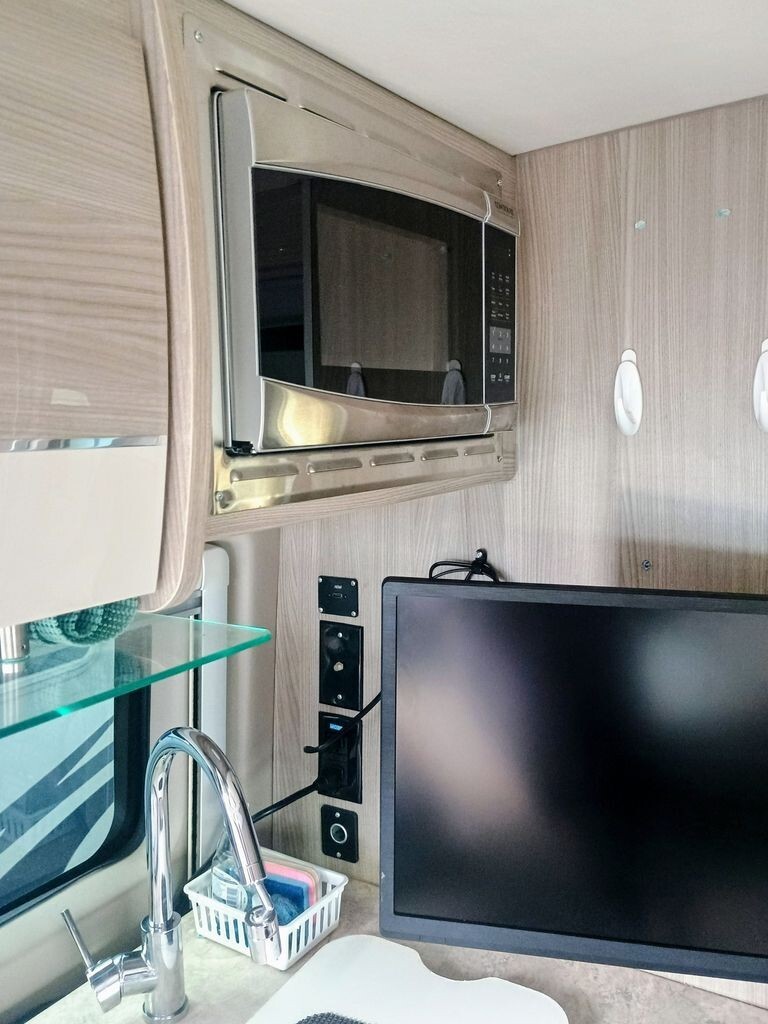 Inside, youll find a modern kitchen with a refrigerator, microwave, sink, and cooktop, along with a convertible sleeping area that easily transitions from day to night. The wet bath provides added convenience, while ample overhead storage keeps your gear organized. This Scope 18G also features a rooftop A/C, heating system, generator prep, and advanced electrical system to support off-grid camping. Whether youre exploring national parks, city hopping, or chasing spontaneous getaways, this Thor Scope delivers the flexibility, efficiency, and comfort to make every mile unforgettable.