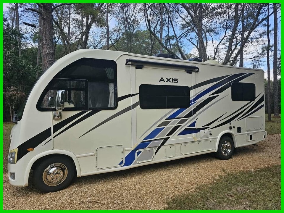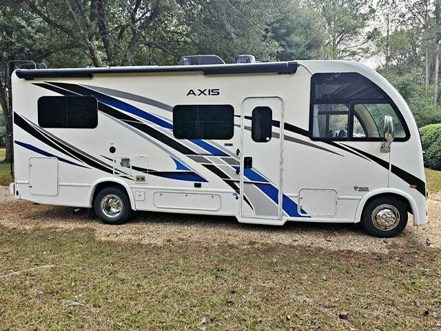 2022 Thor Motor Coach Axis RUV 24.1 Class A RV For Sale in Selma, AL 36701 This Thor is powered by a 7.3L V8 engine and a 6-speed automatic transmission with 14,000 miles. The overall length is 25.67 feet, and it comes equipped with 1 power-retractable slide-out, a 17-foot power awning, 2 A/C units, and room to sleep up to 5. This unit has been well-maintained. Kitchen/Living Area Features Flip-Up Countertop Extension 2-Burner Stovetop Microwave Oven Mid-Size Fridge/Freezer Sink & Faucet Storage Space 32” TV Reclinin