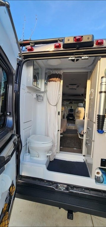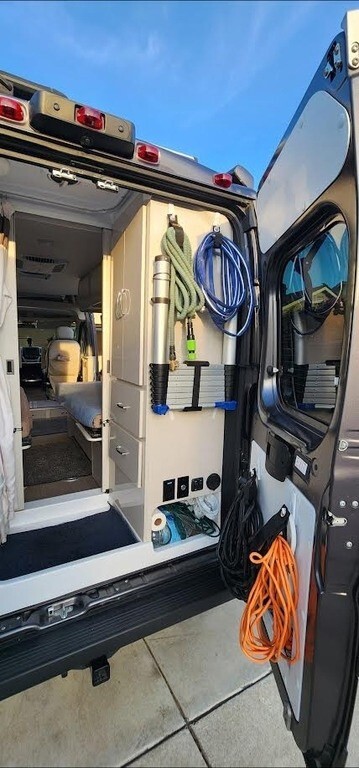 “This 2022 Thor Motor Coach Tellaro 20L is a well-equipped and carefully upgraded Class B RV, ideal for comfortable travel and off-grid adventures. It features 200 amp-hours of RELiON lithium batteries supported by a secondary under-hood alternator and a 190W solar panel, ensuring reliable charging while driving or parked. Inside, you’ll find air conditioning, heat, a full kitchen, a shower, and a spacious bed that, when fully assembled, is larger than a California king. Both front captain’s chairs swivel fully, and the van’s wraparound windows provide excellent visibility and scenic views on the road. Additional upgrades include a driver-side rear door VanUp mount with a rear spare tire and extra space for accessories, as well as a Yakima SUPDawg paddleboard/surfboard carrier. This Thor has been well-maintained and is ready for the next adventure.”