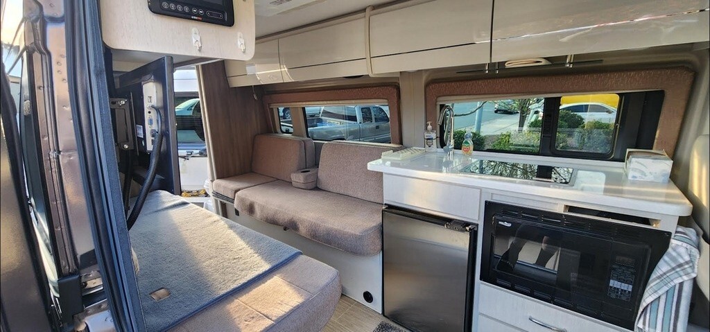 2022 Thor Motor Coach Tellaro 20L Class B RV For Sale in King City, CA 93930 This Thor is powered by a 3.6L V6 engine and a 6-speed automatic transmission with 21,510 miles. The overall length is 21.08 feet and it comes equipped with a 16-foot power awning, 1 A/C unit, a solar panel, and plenty of room to sleep 2. This unit has been well-maintained. Interior Features 2-Burner Stovetop Microwave Oven Compact Fridge Sink & Faucet with Cover 24” TV on Swivel Removable Pedestal Table Two Twin Beds (Converts to King)