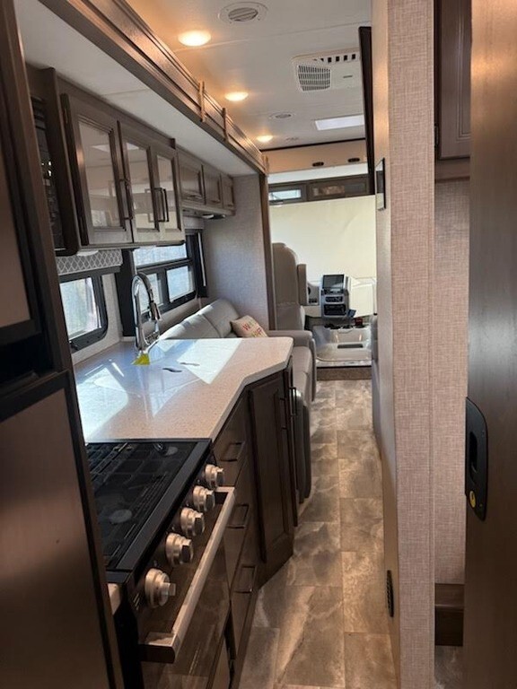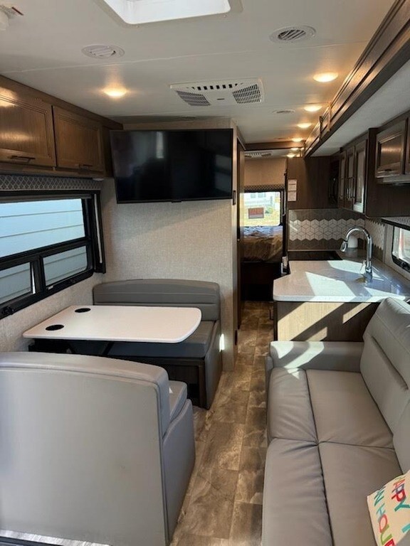 2022 Thor Motor Coach Windsport 29M Class A RV For Sale in Graham, NC 27253 This Thor is powered by a Ford Triton V8 engine and an automatic transmission with only 5,400 miles. The overall length is 30.83 feet and it comes equipped with 1 power retractable slide-out, 1 power retractable awning, 2 A/C units, upgraded solar, a generator, and plenty of room to sleep 6. This unit has been well-maintained. Kitchen Area Features 3-Burner Stove/Oven Overhead Fan Microwave Mid-Size Fridge/Freezer Sink & Faucet Booth Dinette