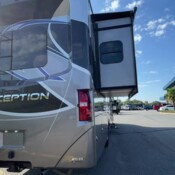Entertainment Ready: Multiple TVs including exterior entertainment center, premium sound, and Winegard Connect Wi-Fi system.