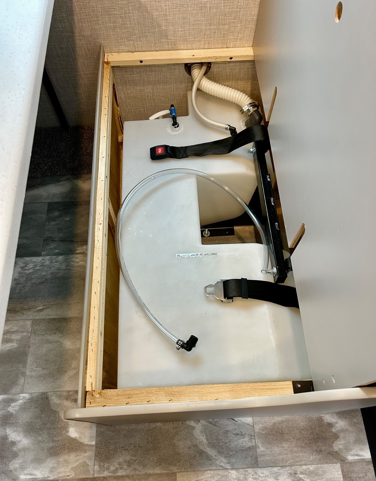 PLUMBING: - Black tank flush system - Shower Miser hot water recycling system - 6 gal. gas/electric water heater - Holding tank heat pads