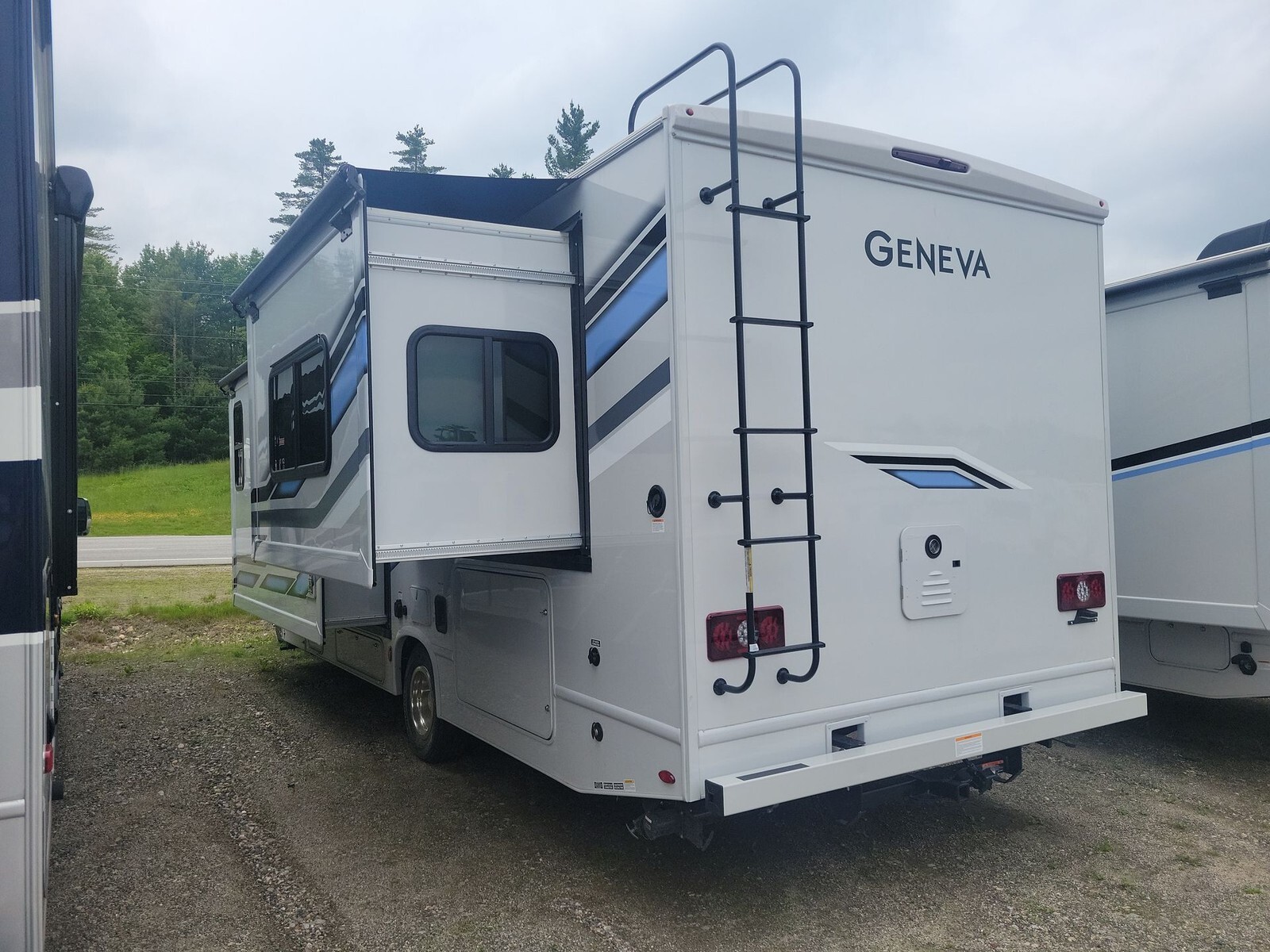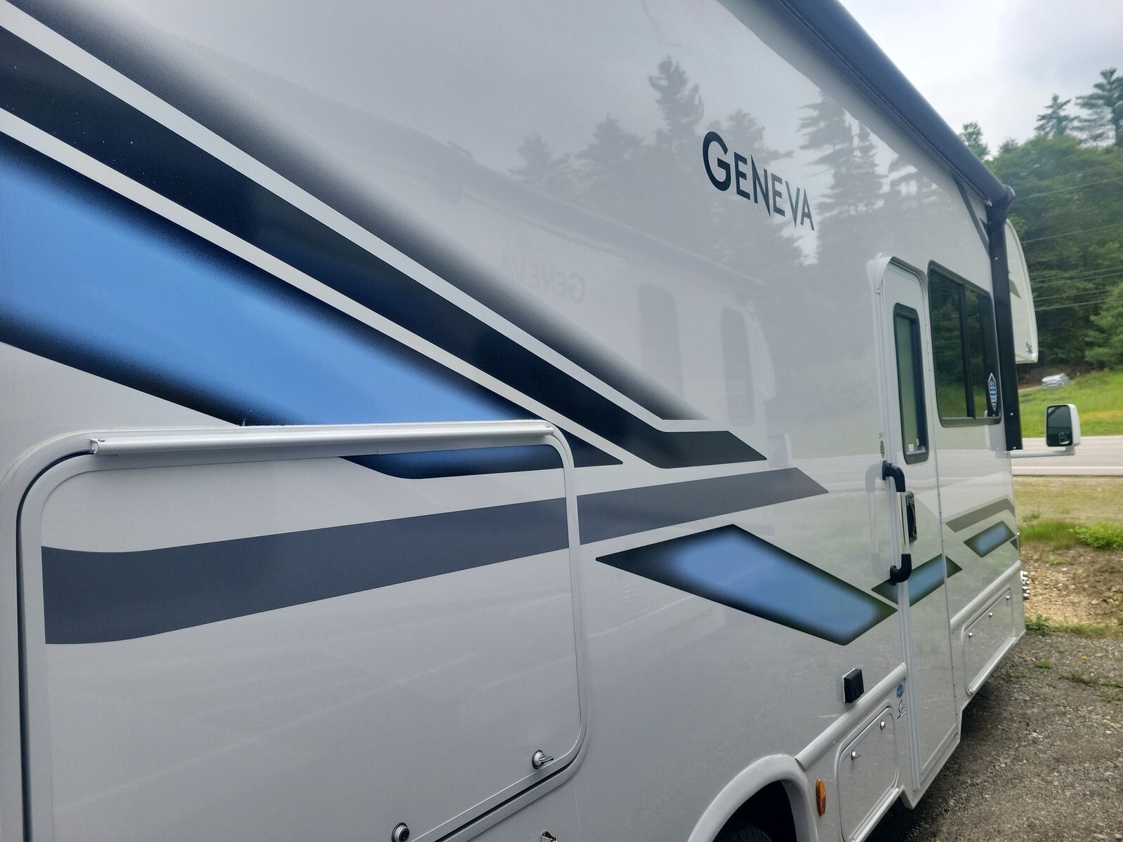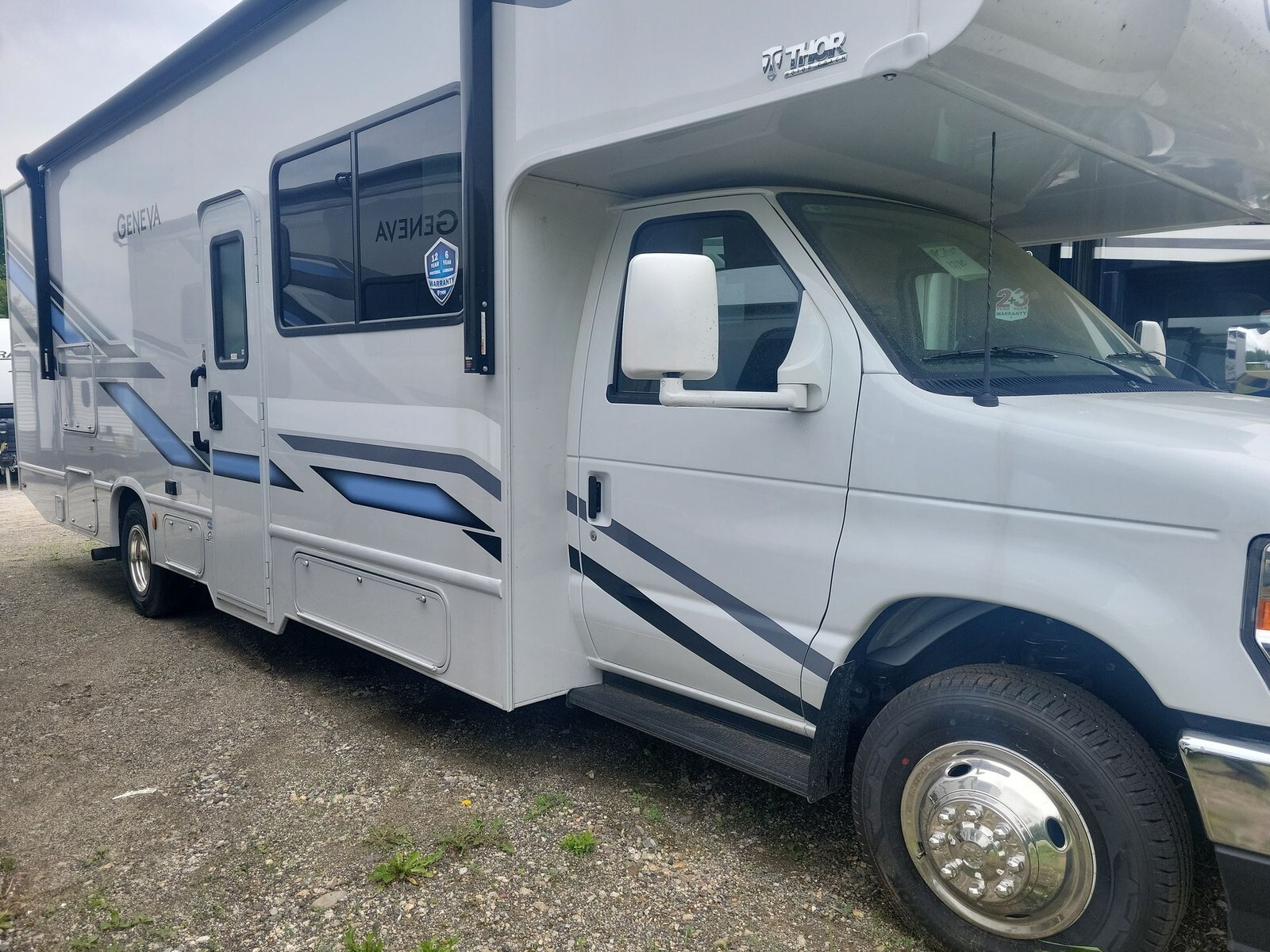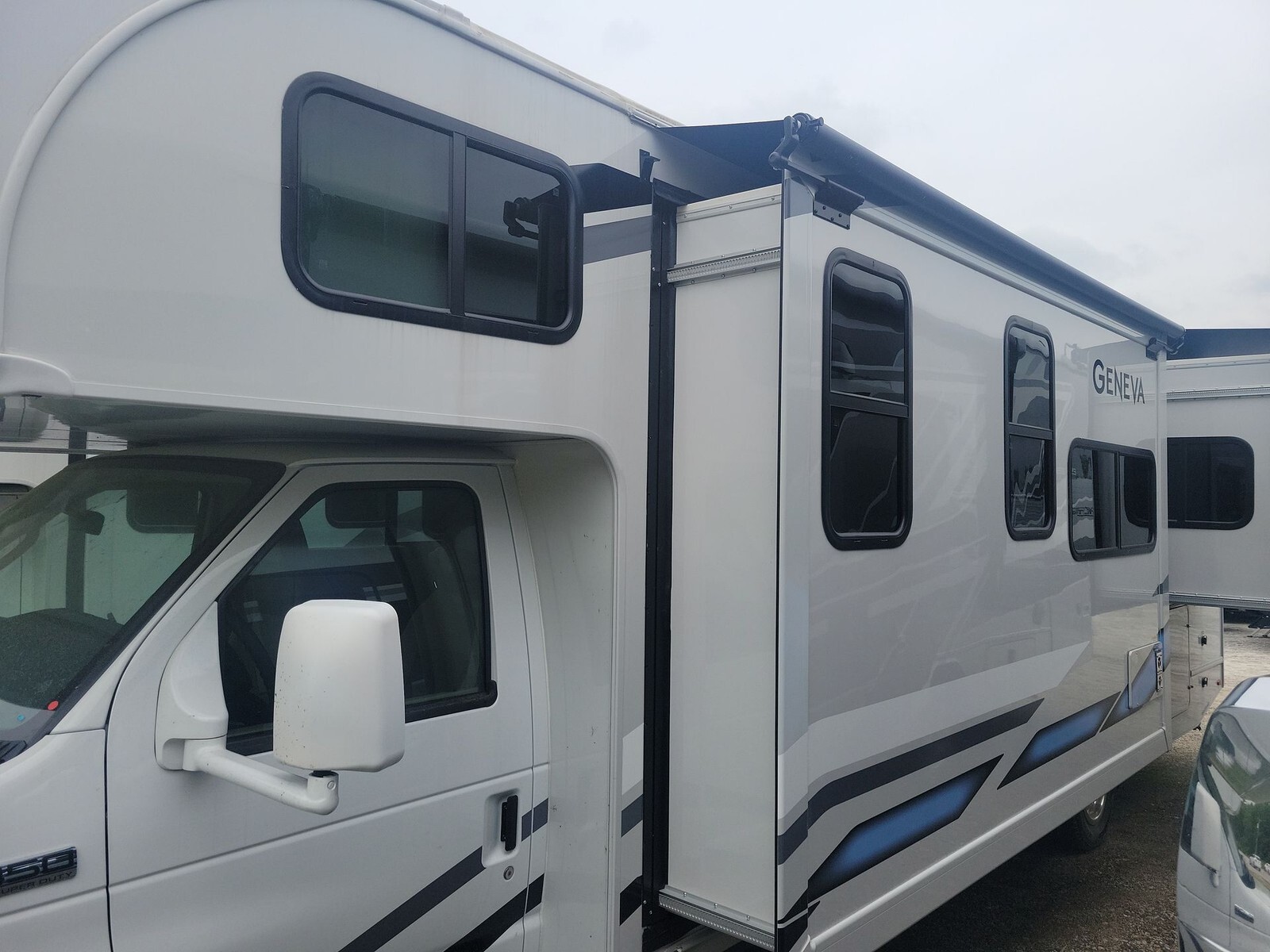 The 2025 Thor Motor Coach Geneva 29VT is a Class C motorhome designed for comfort and convenience, making it a great choice for families and travelers. At 31 feet long, the 29VT offers plenty of space while being easy to drive. Its exterior features modern graphics and a durable build. Setting up at your destination is simple with automatic leveling jacks that provide stability.