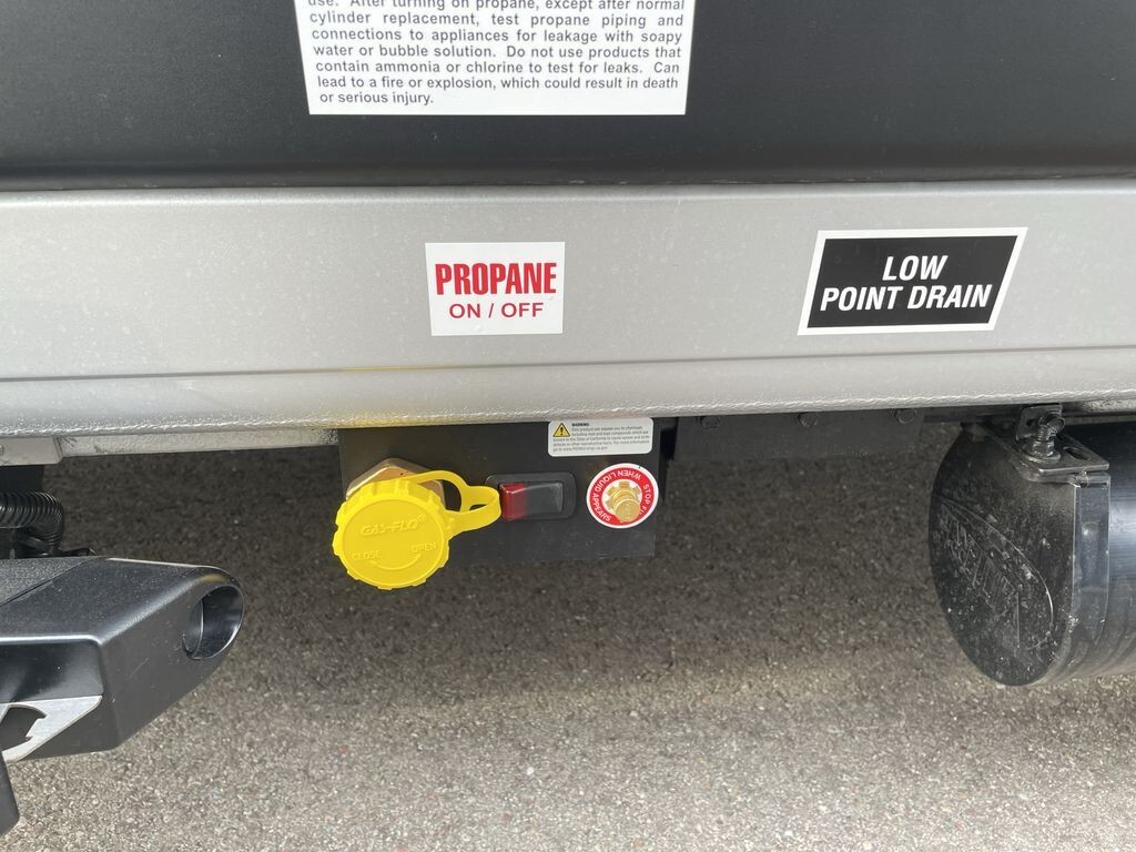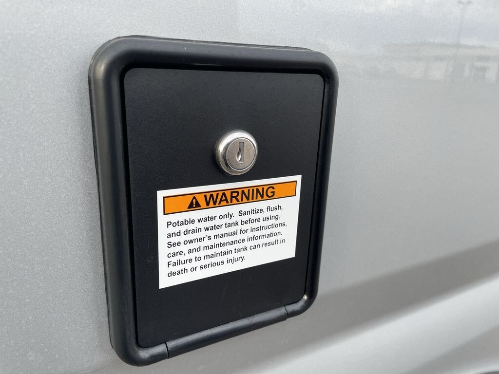 Inside, the 18M is thoughtfully designed to maximize space and functionality. The living area includes a comfortable sofa that converts into a 72" x 47" pull-out bed, providing a restful sleeping area for two. Overhead storage compartments help keep personal items organized and within reach.