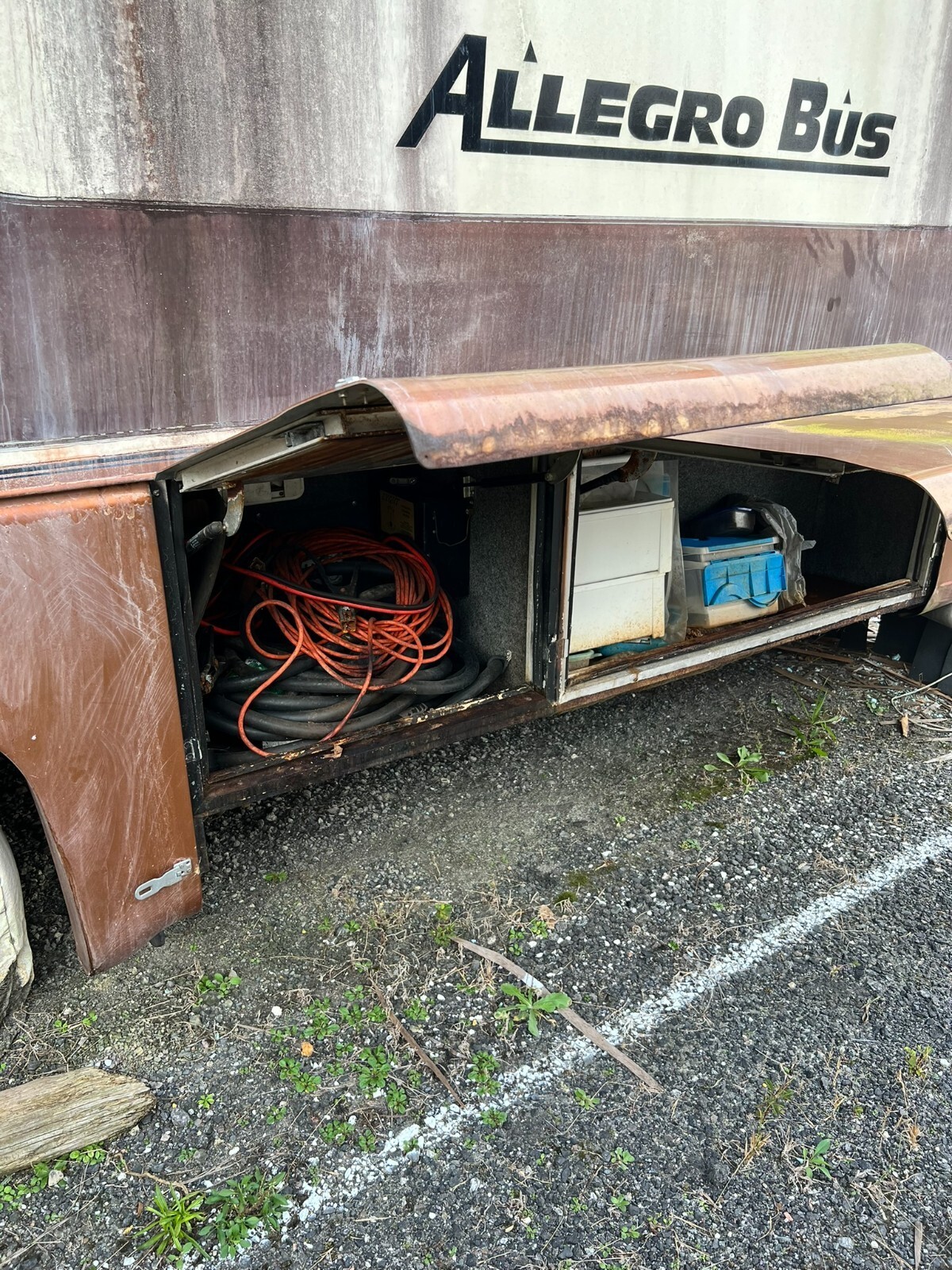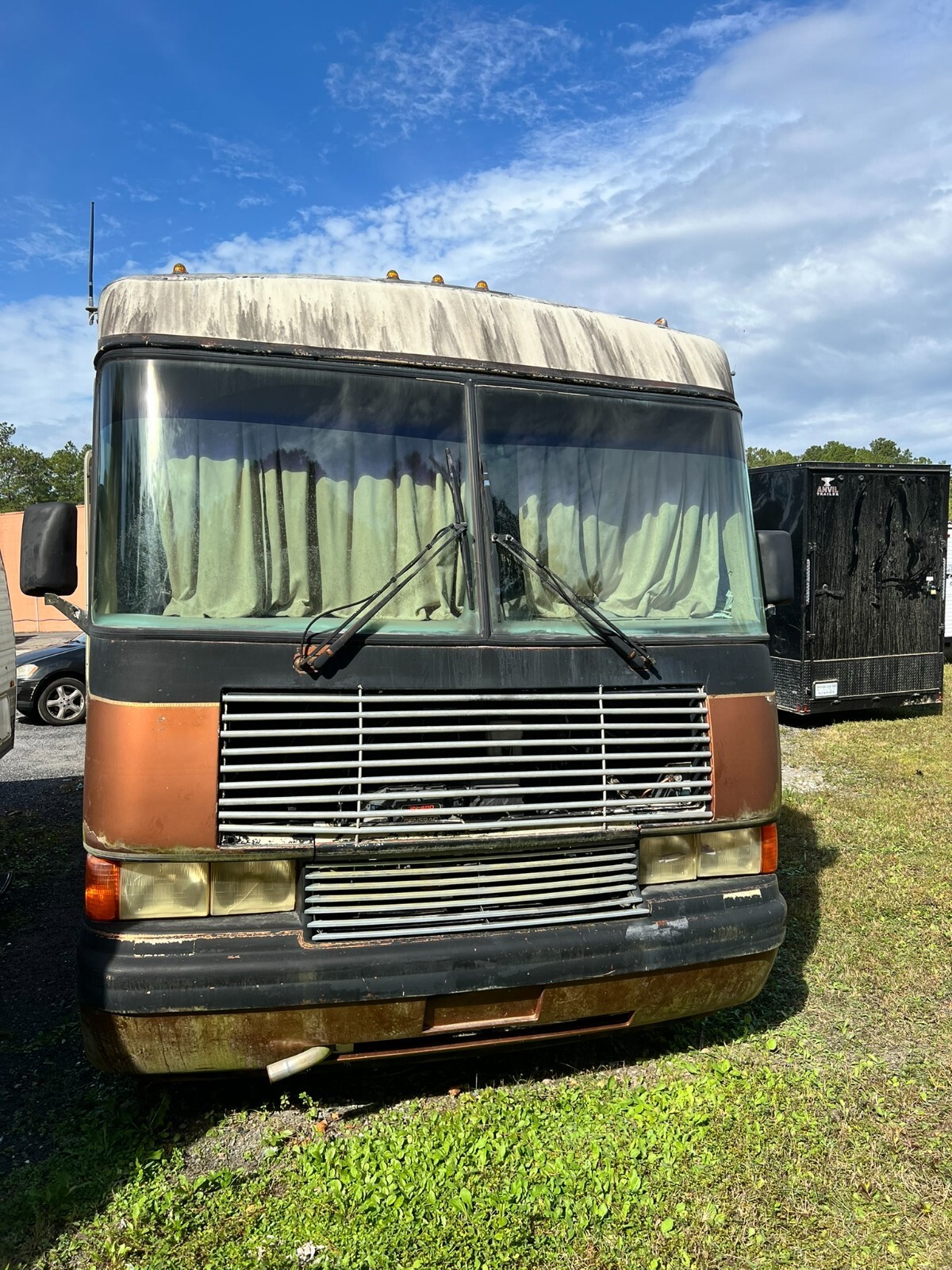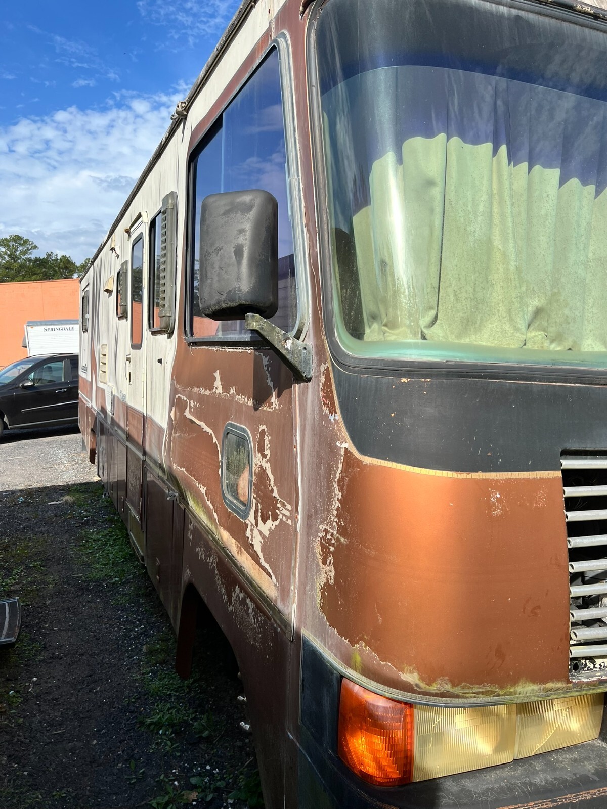 We drove her 600 miles back from Florida to Charleston, SC. She has basically been parked in gated storage since then. The roof coating failed and water got in and caused some cosmetic damage, primarily to one of the upper cabinets as you can see in the picture. There are a few other areas of water intrusion as well, but this can be repaired and is reflected heavily in the price. She has not been started in a couple of years, but the Cummins Diesel with Alison Transmission is clean and has low miles(about 36000). However she may need towed from the storage lot, but can remain there if needed. It's about $250 a month and is secured. Storage is paid through November 2025 right now and can continue.