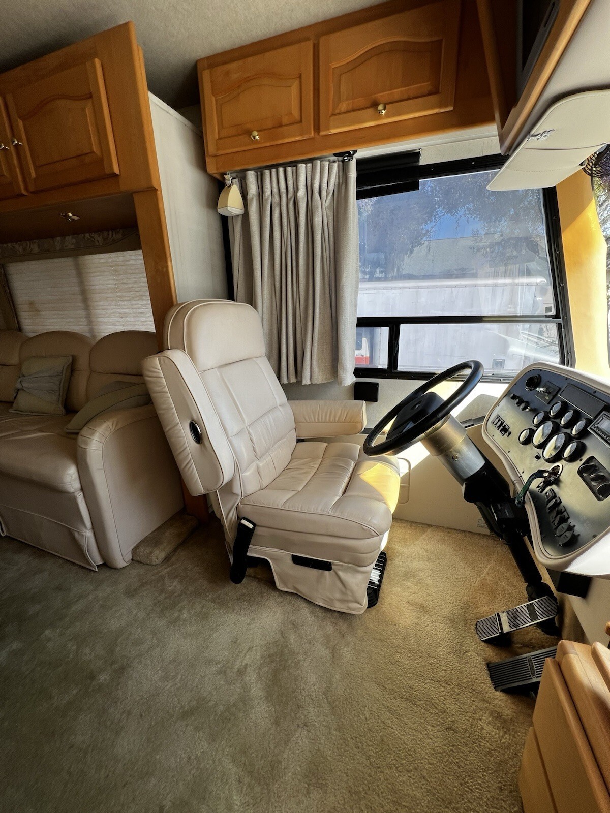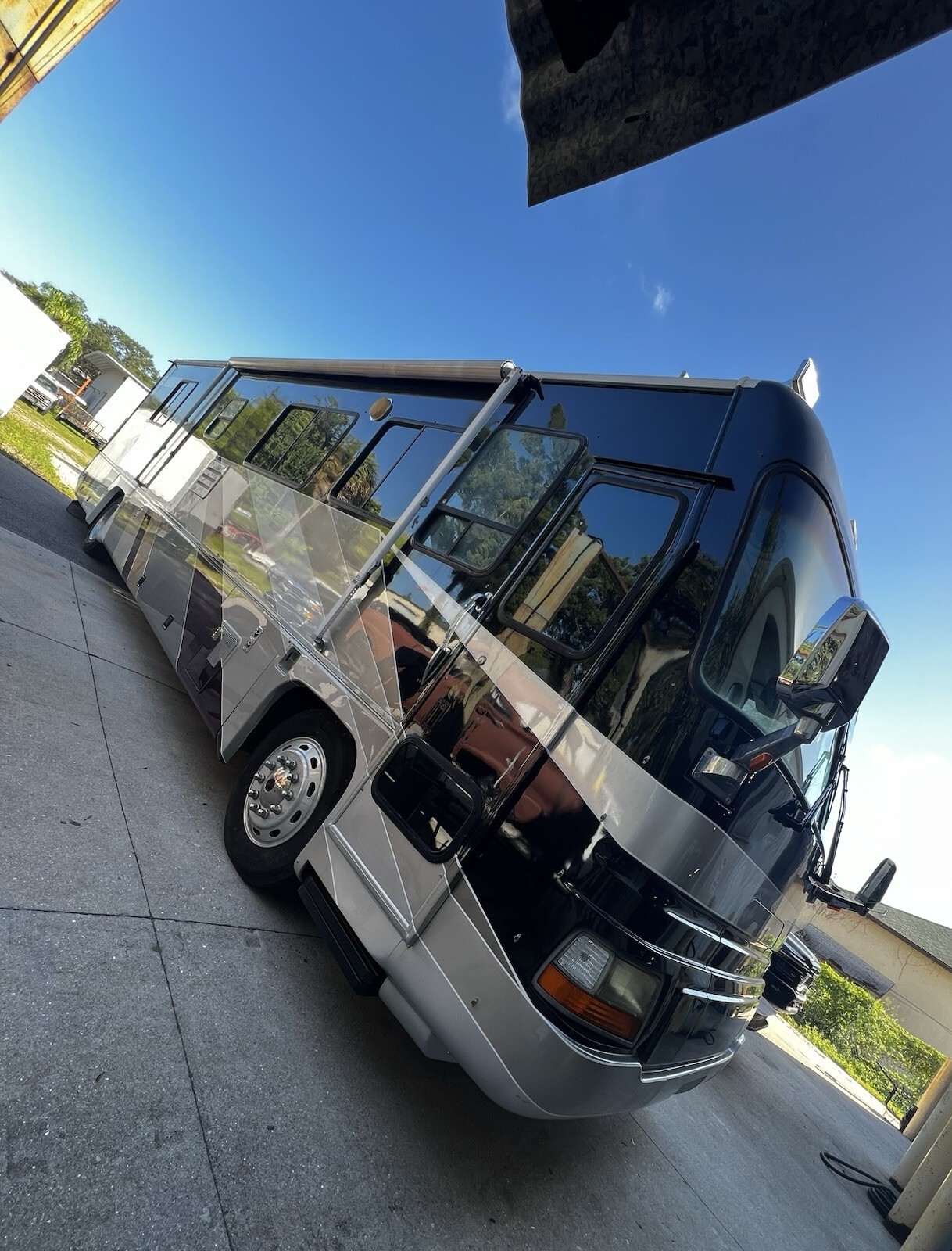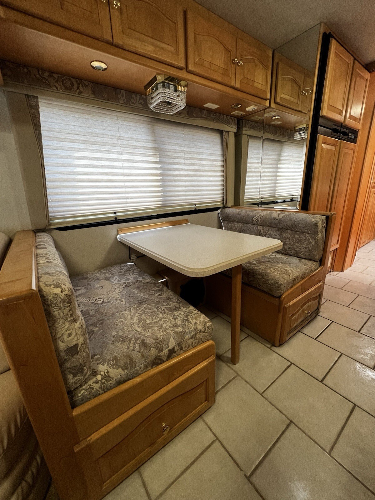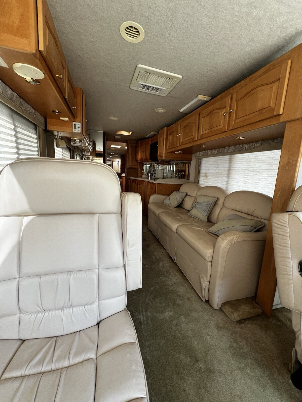 The 2001 Tiffin Allegro 40 OP is a 40-foot diesel motorhome built on a PowerGlide XC Raised Rail chassis, featuring a 330 HP Cummins engine and 2 slide-outs. Key specifications include an integrated air leveling system, front and rear air suspension with custom-tuned Koni shocks, front disc brakes, and a three-stage compression brake. It is a Class A, self-contained motorhome. Allison 3000MH six-speed automatic with lock-up torque converter. 7.kw Onan Diesel Generator. Need new awning. Contact with questions