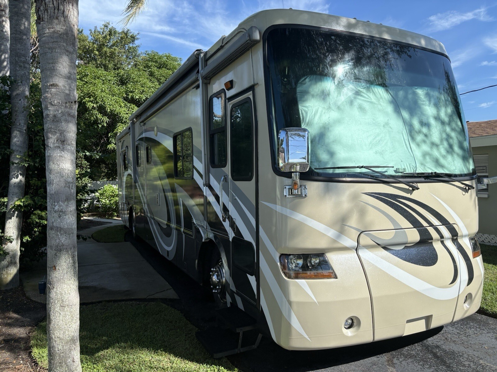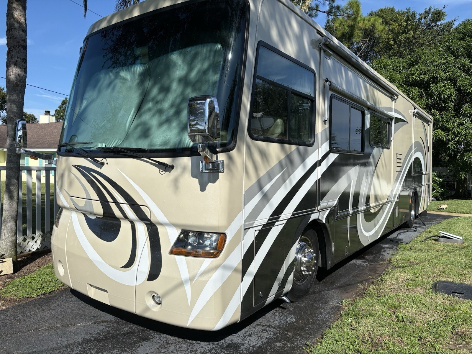 2005 Tiffin Phaeton 40 QDH, CAT C7, 350 HP, 59,000 miles. I’m the 2nd owner. Onan 8kw generator with 2200 hours, Freightliner chassis with 8 airbags for a smooth ride. In motion suspension air leveling system. Air and hydraulic leveling when parked. Recent engine and generator service. Tires date coded 2022. House batteries 2024, chassis batteries 2025. Large basement storage with pullout tray. 4 slides, bath and a half, queen walk around bed. Very large and spacious layout with tons of drawer, cabinet and closet space. Extra large kitchen with double stainless steel sink, 3 burner stove, 4 door refrigerator with ice maker. Updated Smart TV’s. Satellite system. Surround sound stereo system. Back up camera with audio. Twin power recliners and fold out sofa in living room. Power main awning with new canvas. Completely remolded interior. Beautiful exterior color and graphics. Must see!