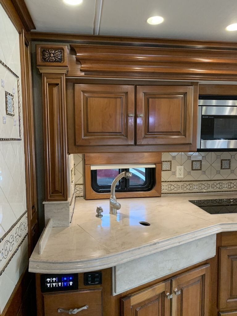 The galley and living areas are designed for both functionality and style, with high-quality finishes, ample storage, and an open, inviting layout. Every detail reflects Tiffins renowned commitment to craftsmanship and durability. From solid wood cabinetry to refined trim and lighting, this coach exudes timeless luxury.