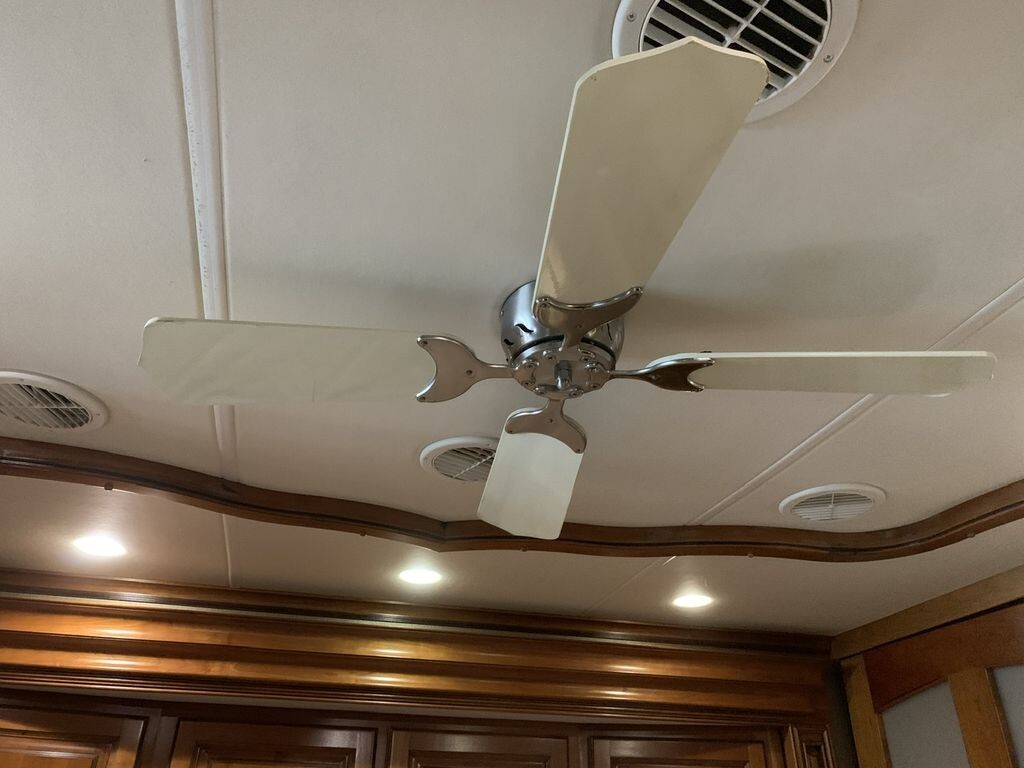 Step inside to a beautifully upgraded interior that blends residential comfort with elegant design. The original sofa has been replaced with luxurious electric recliners positioned behind the drivers seat, providing the perfect place to relax after a day of travel. An independent recliner behind the passenger seat offers additional personalized comfort, making this coach ideal for couples seeking both space and privacy.