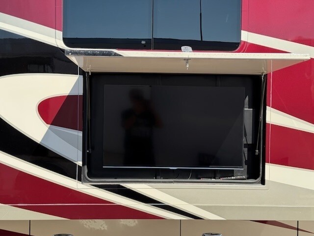Outside, the large power patio awning allows you to enjoy the campsite, and the large exterior Samsung smart TV makes this a great unit for tailgating at your favorite team's events. Added an Extra Camera, Tire Pressure Monitor System, Extra GPS System, Tons of extras.
