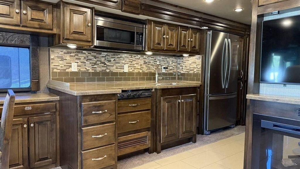 - Four new house batteries (2026) - Safe-T-Plus steering stabilizer and Koni shocks (front and rear) - Four solar panels with a 30-amp PWM Digital solar controller - Blue OX flat towing bars and Blue OX Patriot 3 braking system - TST 507 series tire pressure monitoring system (RV and tow vehicle) - Portable 16,000 grain RV water softener (2025) - Pepwave MAX Transit Duo Cat12 router and Parsec Husky Pro 7 5G antenna - Dish Hopper 3 DVR system and Winegard Traveler Pro satellite antenna - New residential refrigerator with water dispenser and ice maker (2025) - New Captain’s chairs with footrests and new carpeting (2023) - TCBL 130 psi air compressor, tire covers, and all necessary hoses Key Features: - Freightliner Chassis with HWH Hydraulic automatic leveling jacks - Four TVs (three interior, one exterior) and a stacked washer/dryer - Kitchen with convection microwave and 3-burner propane stove - Two rooftop A/C units with heat pumps and two propane furnaces - 8 Kw Onan diesel generator and 2000-watt inverter - Power day/night windshield shades and solar/privacy shades throughout - Large awning with LED lighting, slide-out toppers, and heated power mirrors - Central vacuum system and an electric fireplace Additionally, we have been flat towing a 2019 Jeep Cherokee TrailHawk, which is fully configured for the included Blue OX towing system. We are open to discussing a package price to include this vehicle in the sale if you are interested. Please let us know if you have any questions or would like to schedule a viewing. Located in North Fort Myers, FL 33917 For more information, please call 833-265-6113 and mention ID 68101810