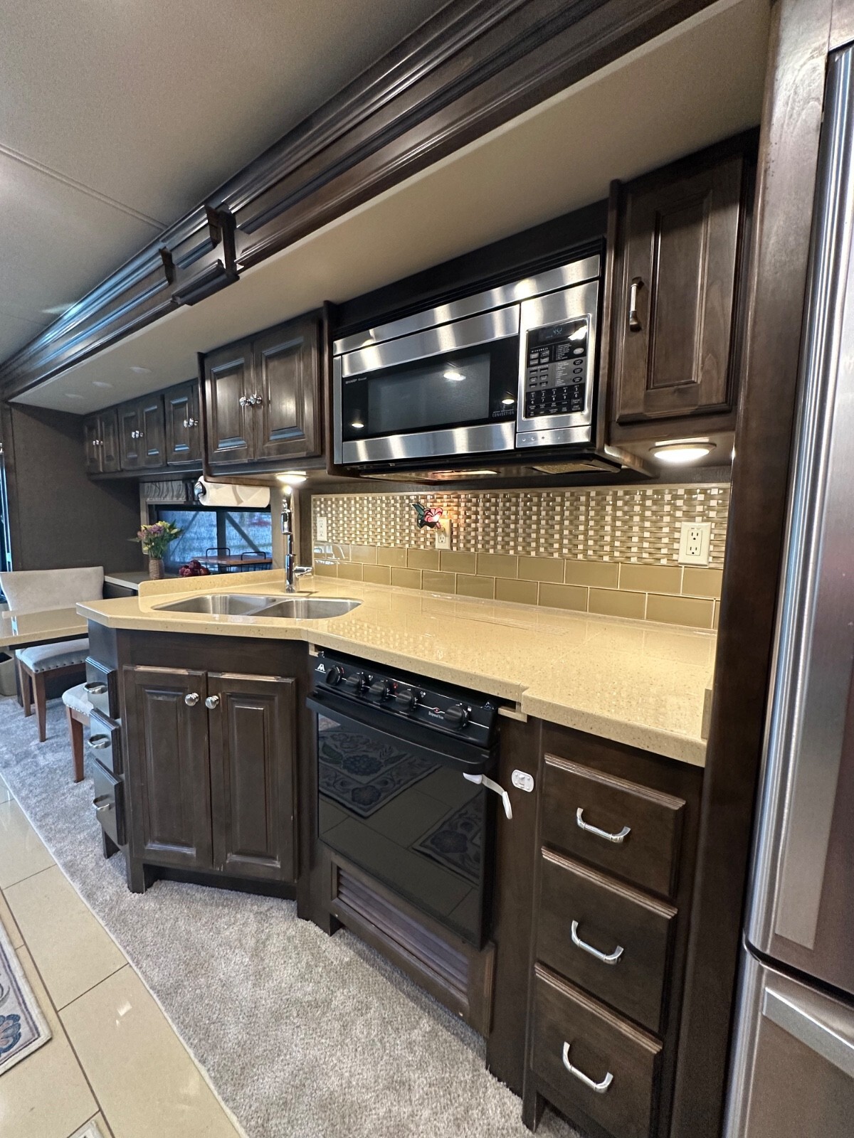 The fully equipped kitchen includes a 3-burner stove, convection microwave oven upgrade, residential refrigerator upgrade and the gas oven upgrade.