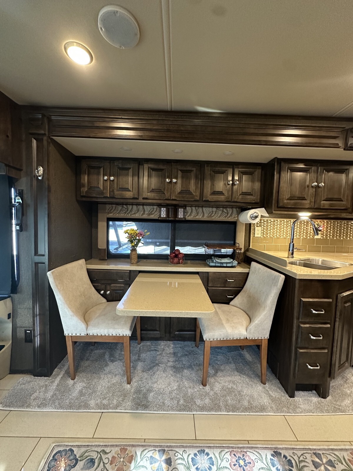 The dining area features the two chair table dinette with the computer workstation upgrade.