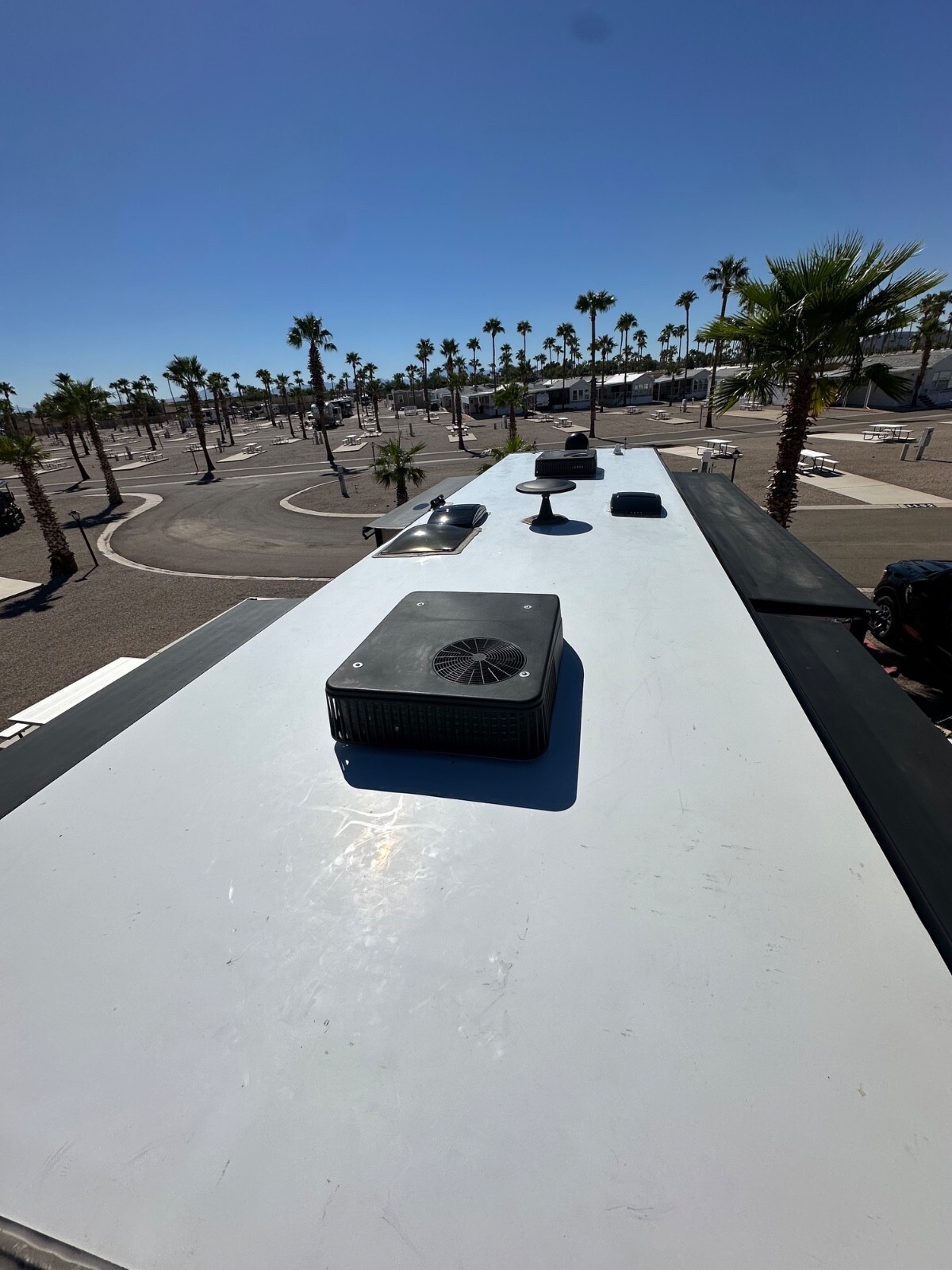 Motorhome is in covered storage located in Tucson, AZ.
