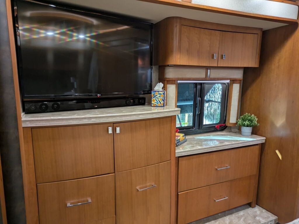 Both back slide upgraded to Vroom slides, Magna shades Front and side, 4 tv's (2 new), LED's, slide toppers, 1.5 bath, Solar.