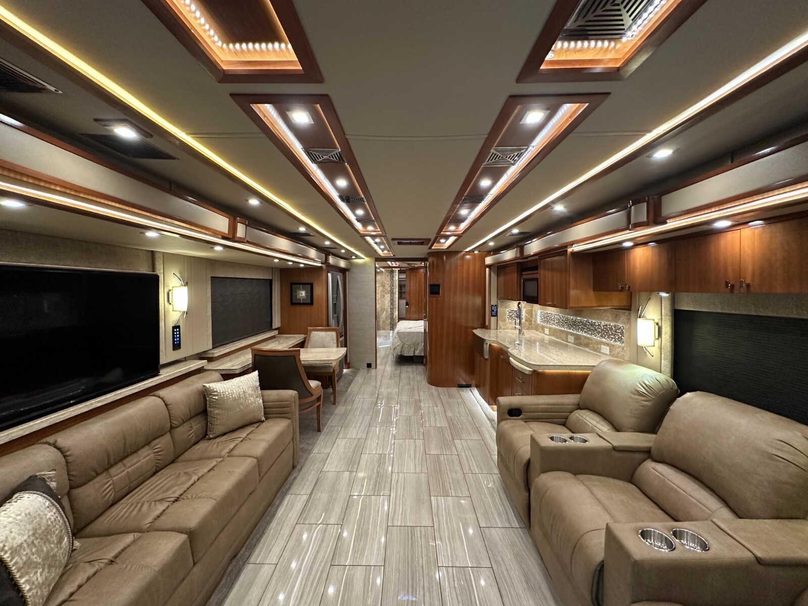 For sale is a 2018 Tiffin Zephyr 45PZ finest motor coach that Tiffin builds. It rides on PowerGlide chassisis powered by a Cummins ISX 605HP diesel engine, Allison 4000MH transmission, with 12,650 miles,20,000 lb tow capacity, Independent Front Suspension,offering incomparable ride, handling, and safety. Coach is highlighted by bath and half floor plan, dinette layout that doubles as an office space, a washer/dryer, a luxurious master bedroom with power sleep number king bed, power lift LED TV, fireplace and an incredible, residential designed master bath with large walk in custom tile shower, beautiful illuminated sink basins, and massive master linen & wardrobe closet. This Tiffin also boasts a 600D Aqua Hot Hydronic Heating system. You will find a multi-function digital dash and instrumentation display system, Navigation with in-dash, tire pressure sensors, interior features heated tile floors and tile back-splashes, ultra-high-end quartz counter tops throughout, large residential refrigerator and convection microwave, powered day and night shades, LED accent lighting throughout (inside and outside), heated and cooled pilot and co-pilot seats, recessed and upgraded ceiling features in the galley and bedroom, recessed cook top, a "Bird's Eye View" camera system for the ultimate in coach visibility, dual integrated power awnings, power entry door awning, exterior entertainment center, (2) electric sliding cargo trays, full coach and multi-color LED ground effect lighting package, 12,500 kw Onan generator with a 226 hours, solar panel package, dishwasher drawer and HD satellite.You will also enjoy the ultimate in slide-out room fit and finish. Please see over 280 pictures below. Coach also has many more options, for more information about this unit please visit the Tiffin website below.https://tiffinmotorhomes.com/wp-content/uploads/2023/07/Zephyr-Brochure-2019.pdf