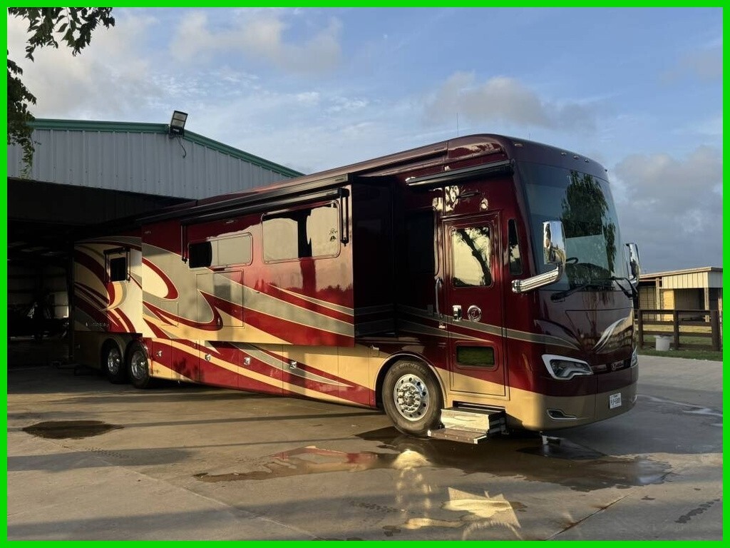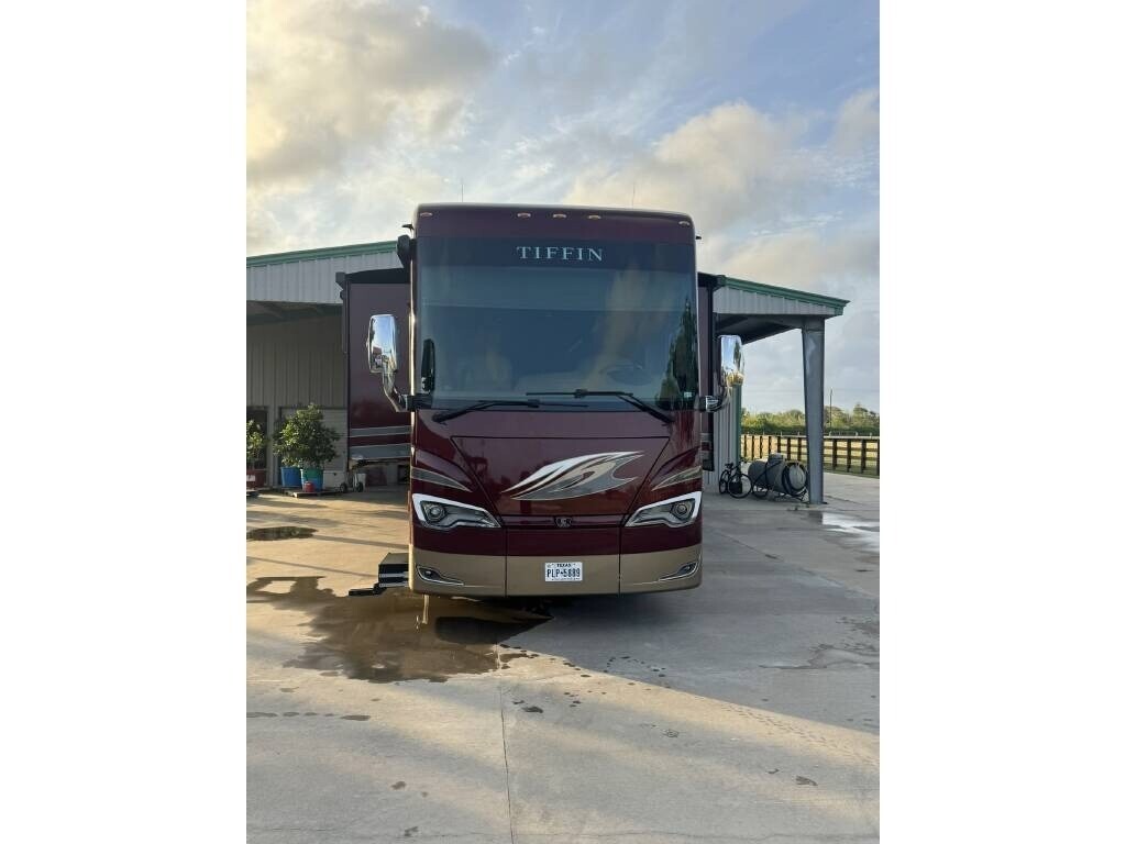 2019 Tiffin Motorcoach Allegro Bus 45OPP This 2019 Tiffin Motorcoach Allegro Bus 45OPP is in like-new condition with only 7,088 miles. Finished in Crimson full body paint with Glazed Honey Natural Cherry cabinetry, this luxury Class A features four slide-outs, heated tile floors, stacked washer/dryer, solid-surface finishes, and a power king bed. Entertainment includes JBL sound, three flat-screen TVs (TV over the windshield was removed and replaced with cabinets), DVD, Winegard satellite, and more. The kitchen area has been enhanced with a custom spice cabinet next to the sink. a Cummins 450 HP engine on a Powerglide chassis with a 12,500 KW Onan diesel generator. Additional features include snap-on wheel covers, mirro