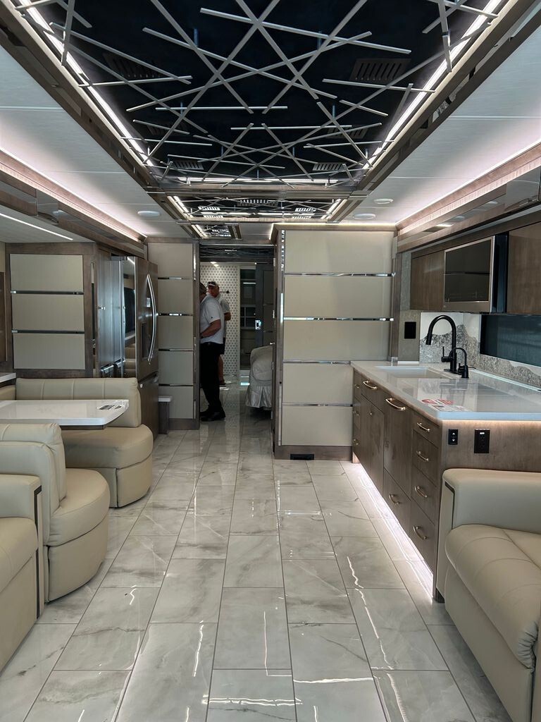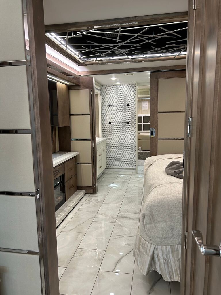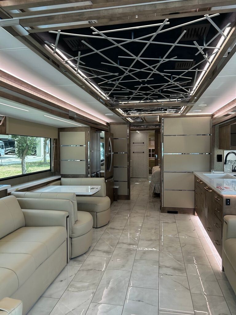 2025 Tiffin Motorhomes Zephyr 45PZ 45' Pusher Cummins 605 HP Diesel Engine. 4 Slide Outs, 2 Awning, Sleeps 4, 3 A/C Units. Flagship Luxury, Like New!