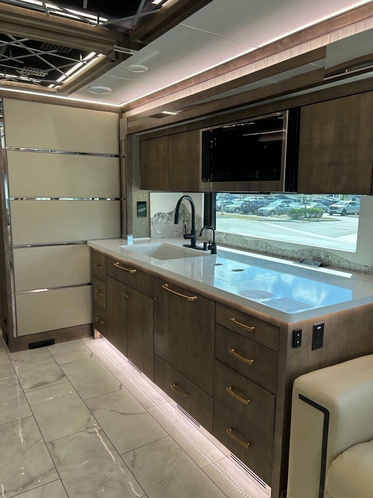 From the moment you enter, youre greeted by a refined, quiet interior highlighted by a cozy electric fireplace, premium finishes, and an open, spa-like living space. Entertain effortlessly with three TVs, surround sound, satellite dish, and cable-ready hookups, while the ice maker and convection microwave oven make hosting a breeze. Long stays are effortless thanks to the washer/dryer, central vacuum, and thoughtfully designed storage throughout.