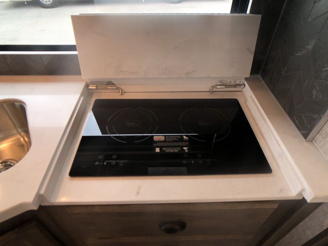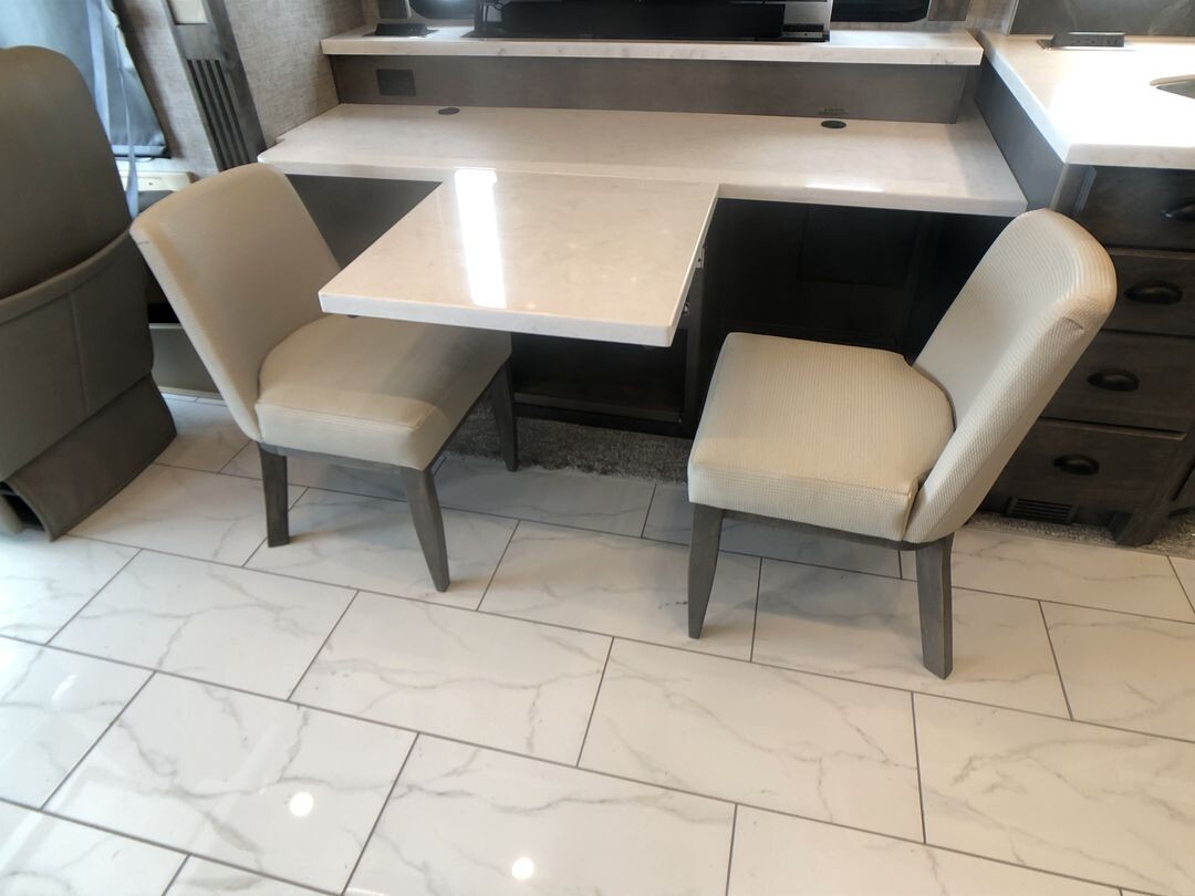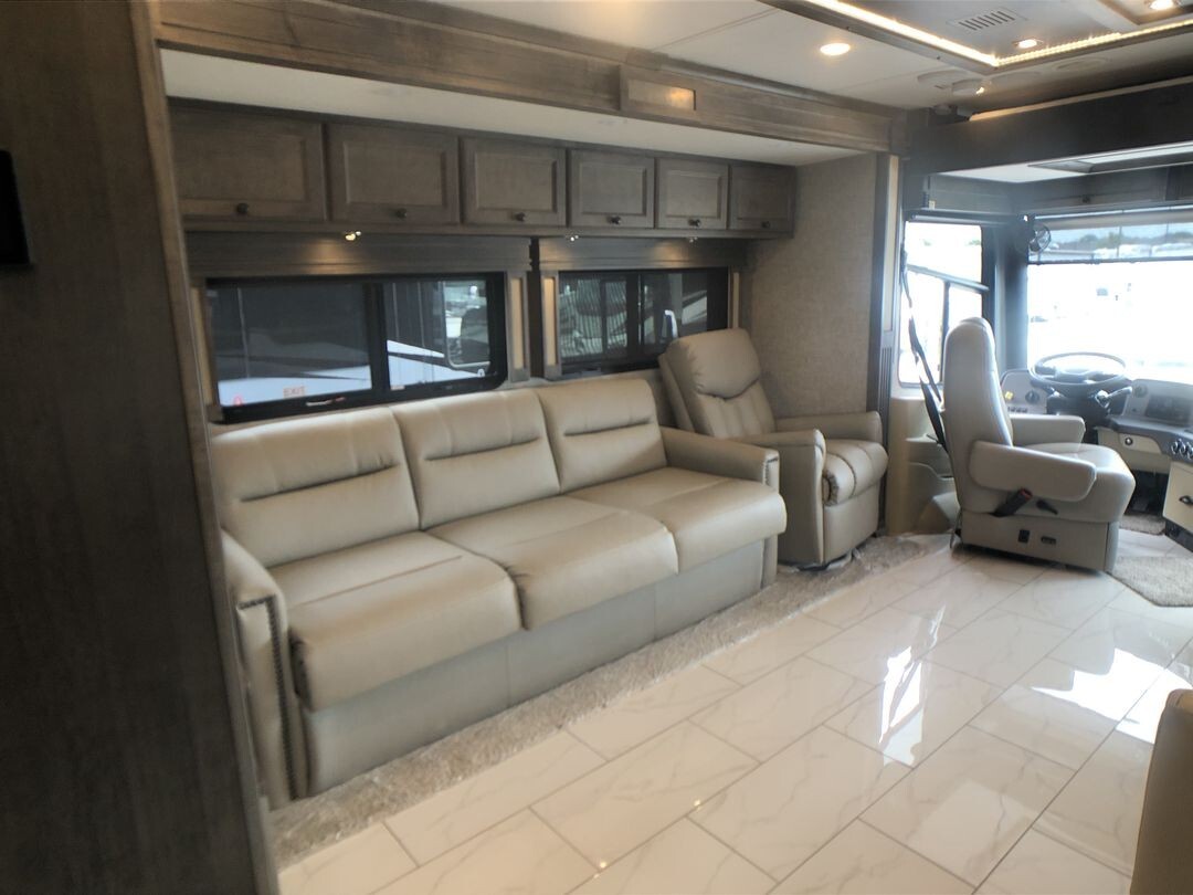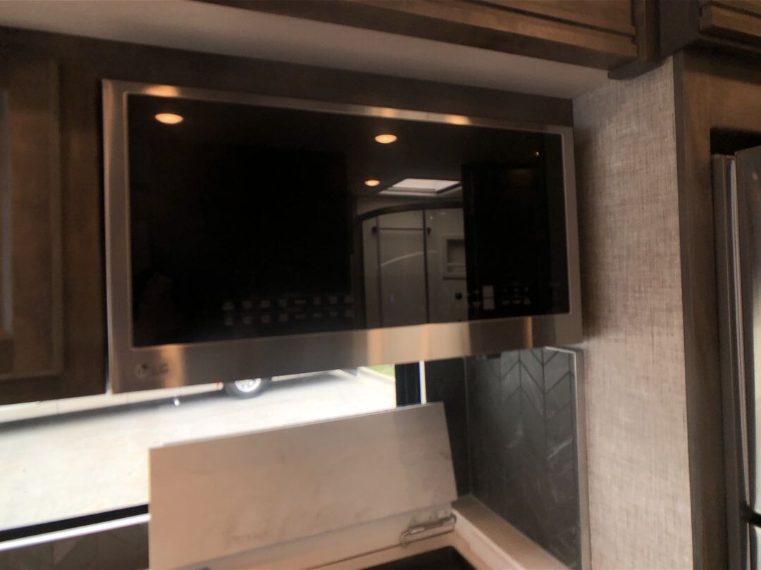 Measuring approximately 35 feet 2 inches in length, the 33AA balances spaciousness and maneuverability. Its exterior features modern graphics and a high-gloss finish that stands out on the road. The large power-retractable awning extends your living space outdoors, providing ample shade for relaxation. With four slide-outs, the interior becomes remarkably roomy, ensuring comfort without feeling confined.